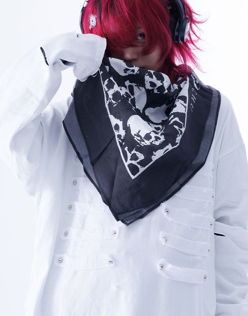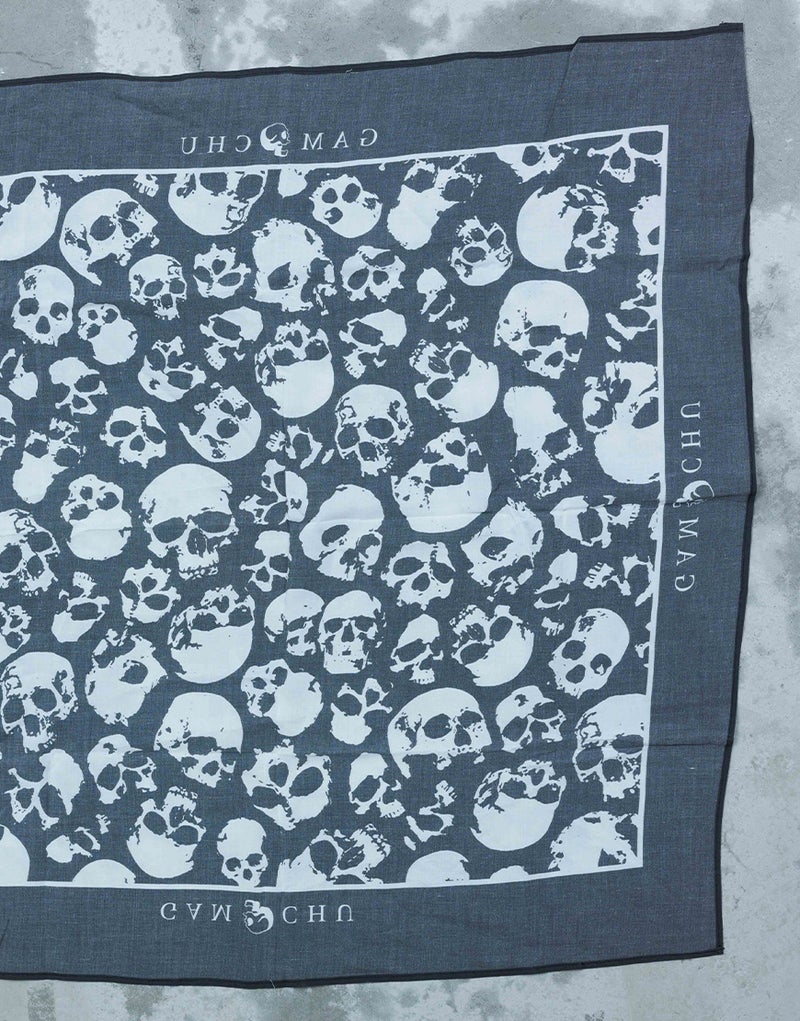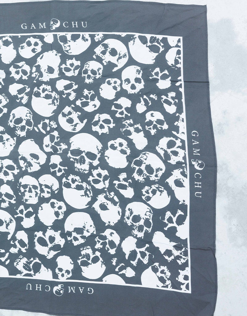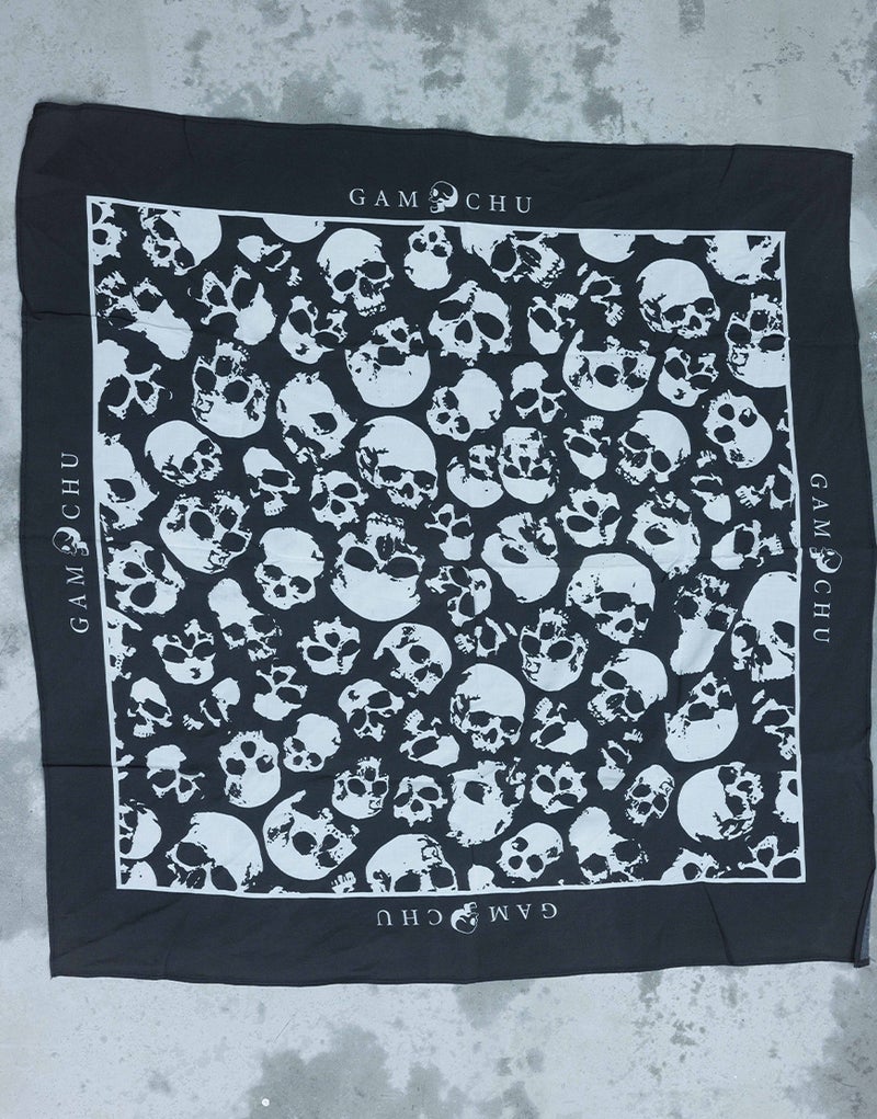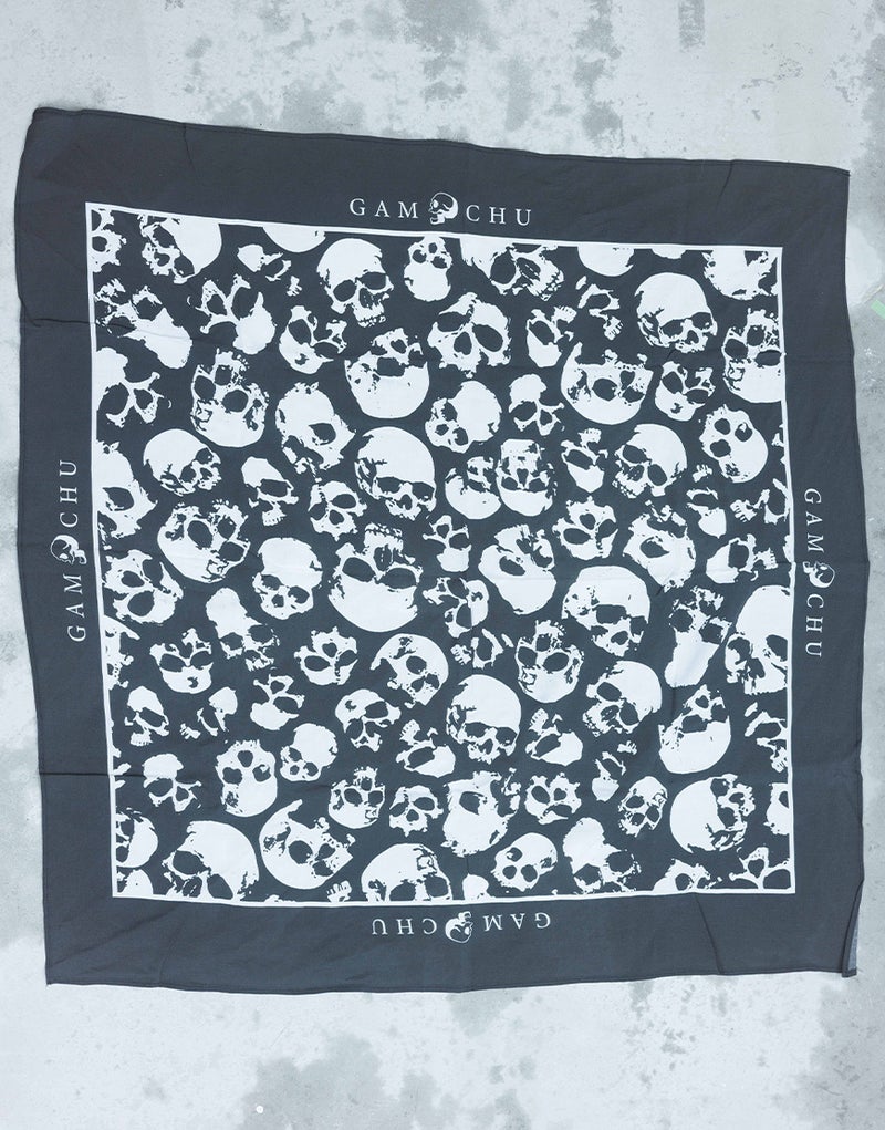 シルエットはゆったりめのユニセックス対応サイズ。さらに、Gamchuオリジナルのスカル柄バンダナ(80cm×80cm)が付属しており、アクセサリー感覚でスタイリングに取り入れることができます。