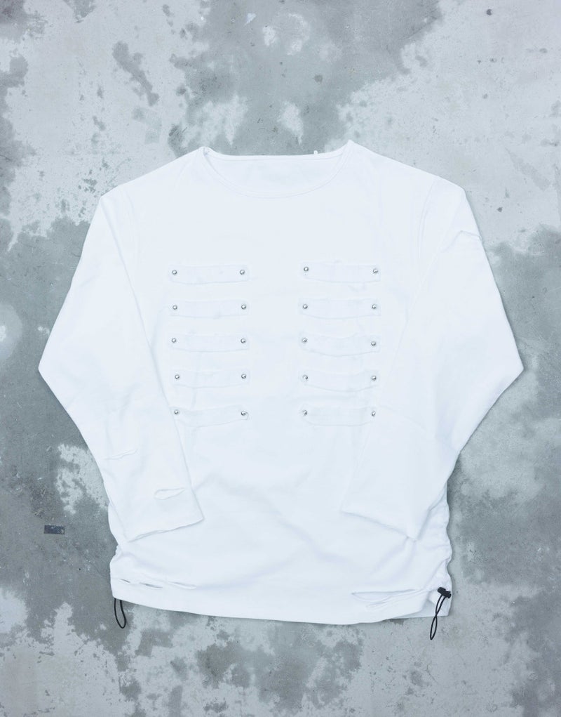 身頃には柔らかい天竺素材を採用し、ガーゼ素材で仕立てた骨パッチが一際目を引きます。