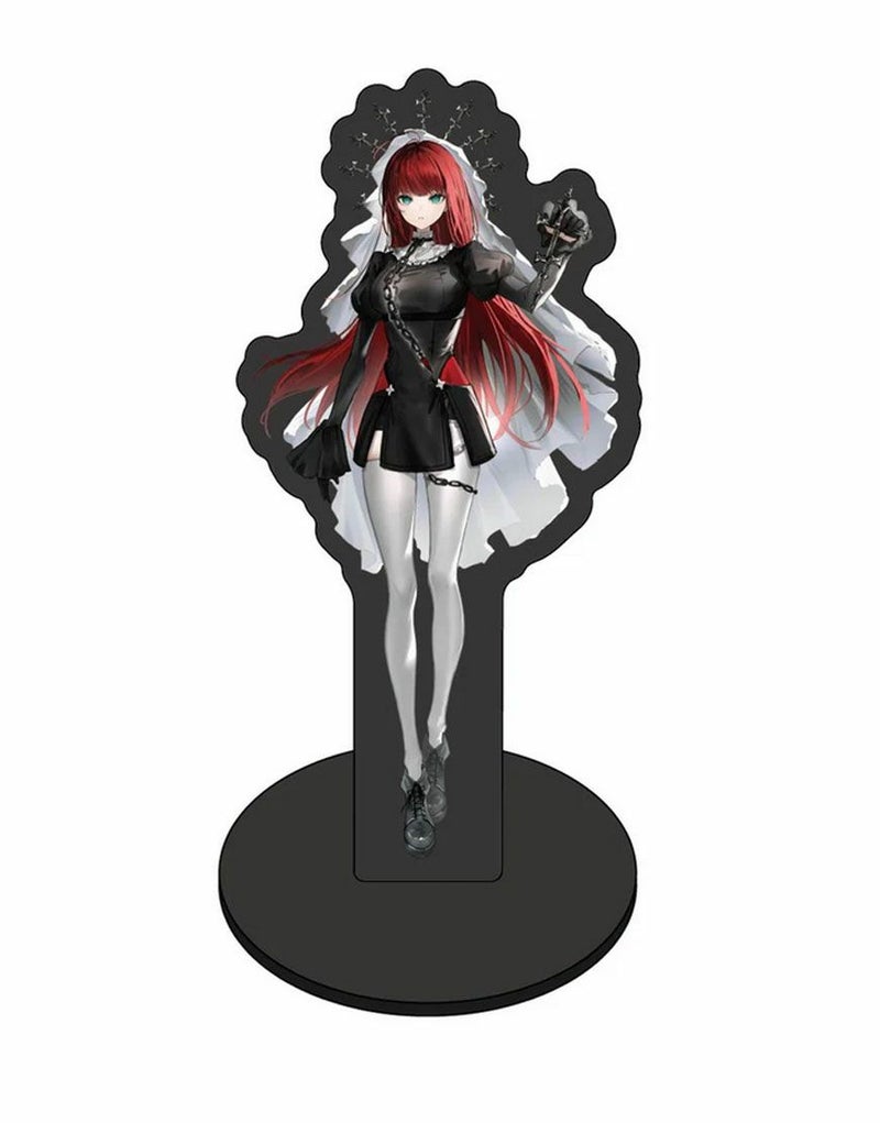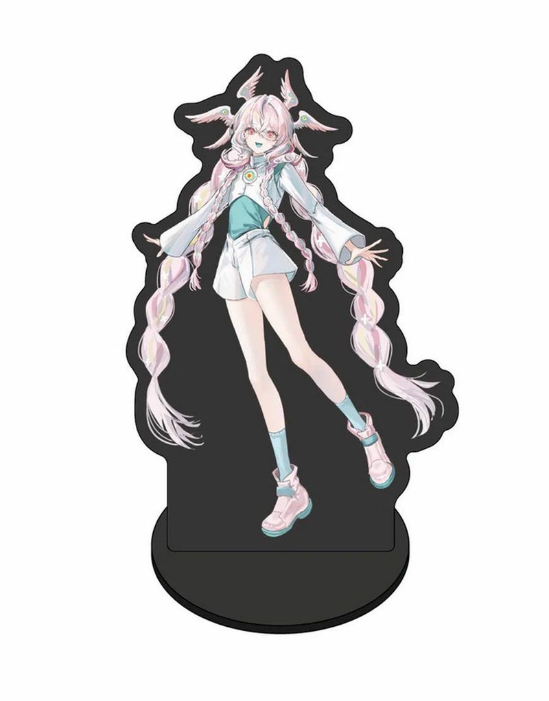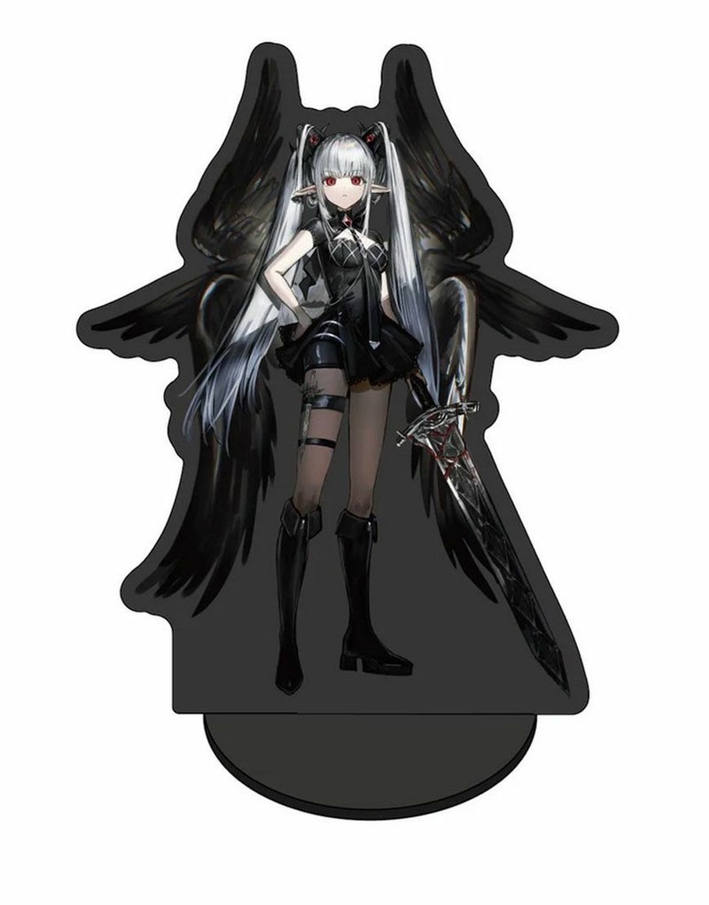 作品の雰囲気に合わせ台座やダイカット部分をクリアブラックで仕上げたアクリルスタンドです。
