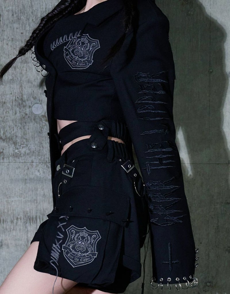 スタッズやランダムピアスが闇感とサブカル要素をプラスし、ガルルらしさを存分に演出。