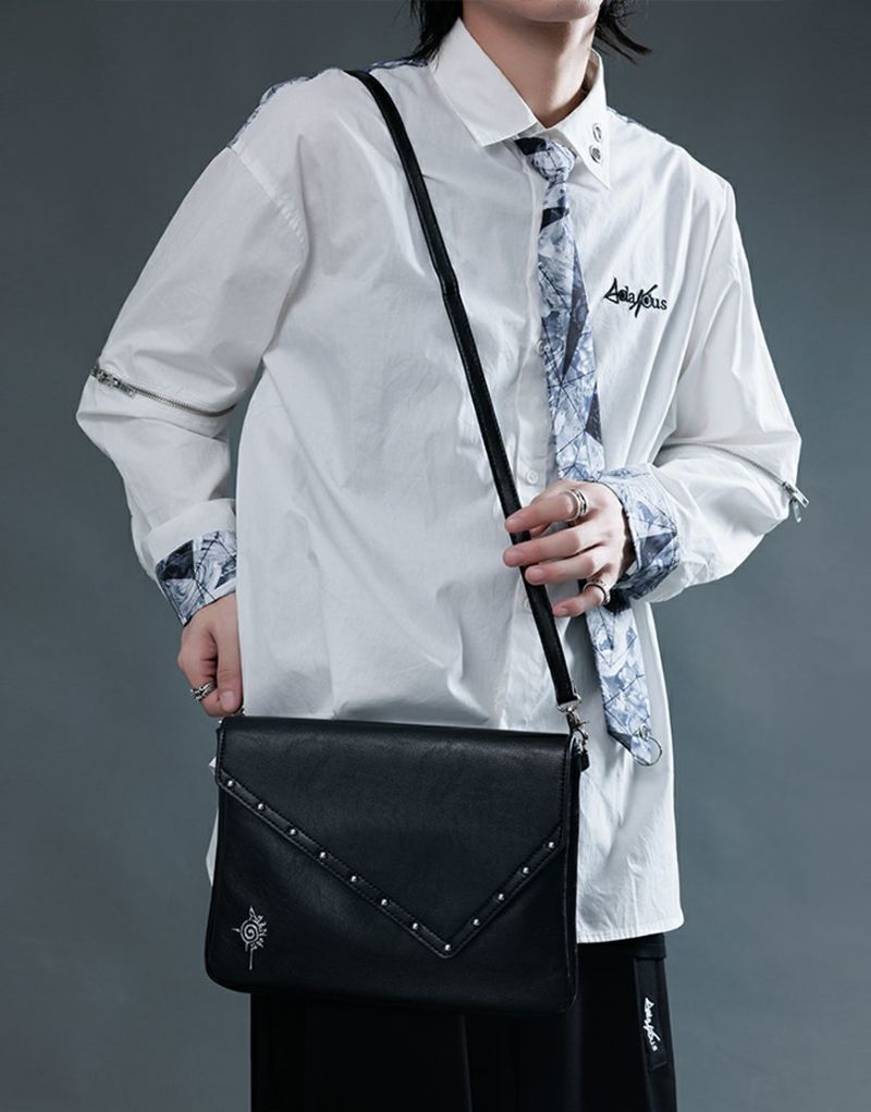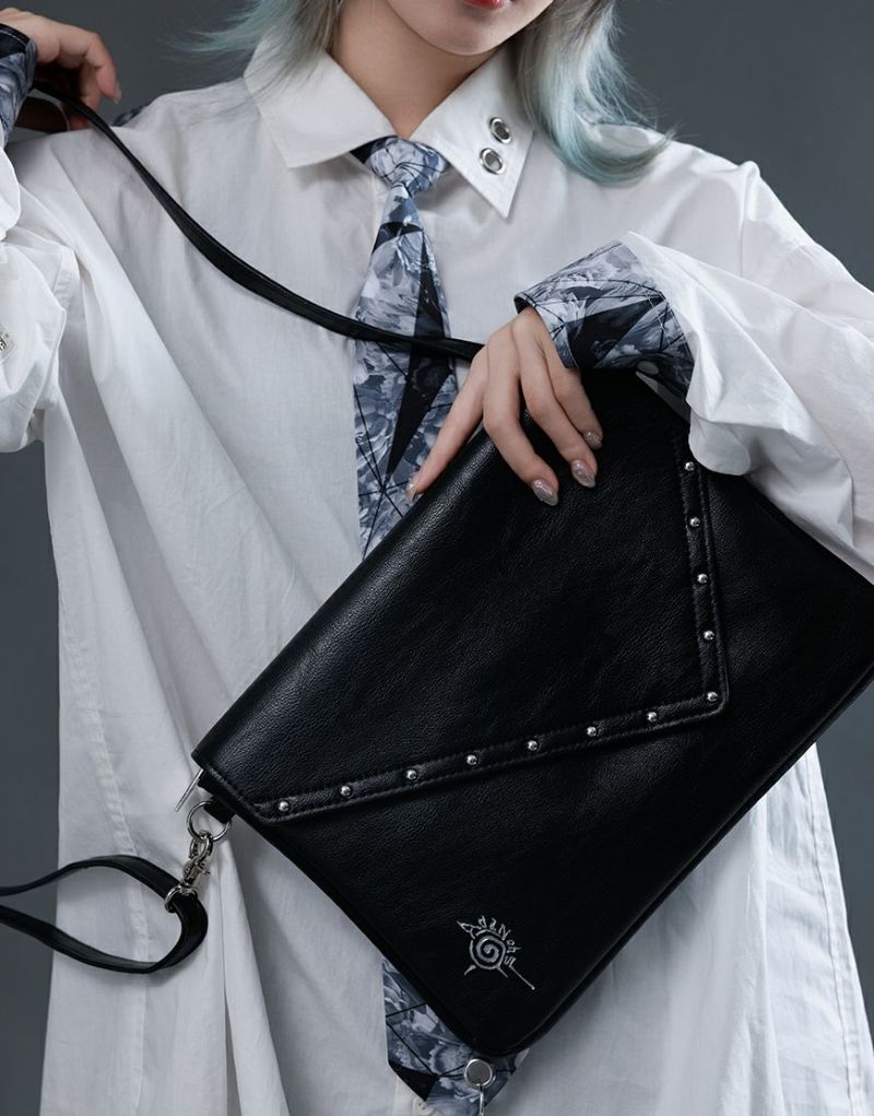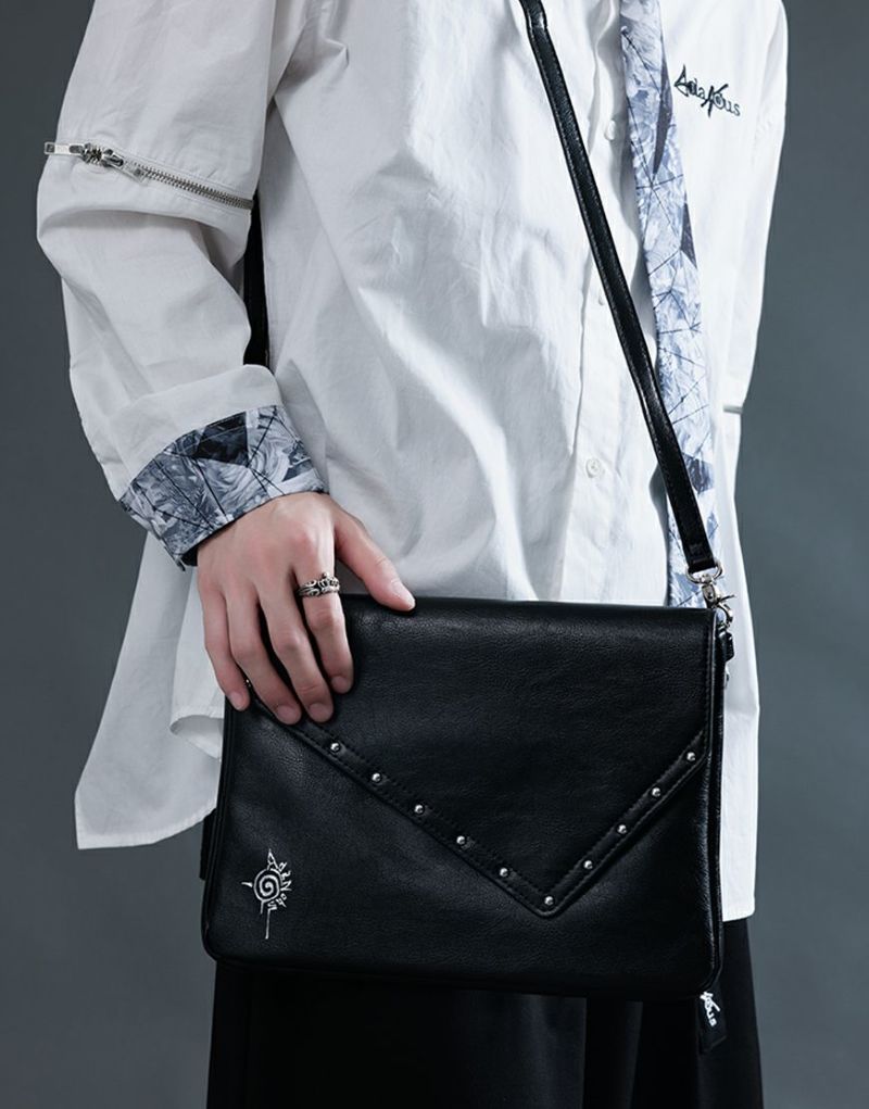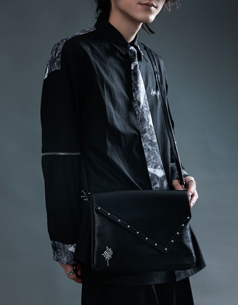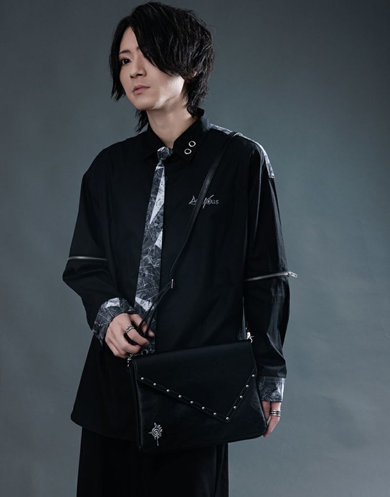 かぶせの淵部分にスタッズで装飾を施し、フロントにAdaNousのブランドアイコンを型押ししたミニショルダーバッグです。