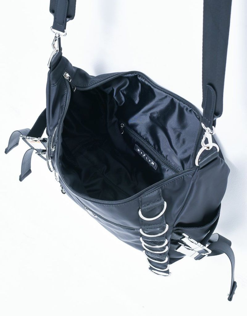 "REFLEM"からDリングデザインショルダーバッグが登場。 大胆にDリングを使ったインパクトあるショルダーバッグです。 サイドにはベルトデザインを配置し、上品なナイロン素材を使用しました。 コーデをワンランク上にしてくれる存在感あるデザインです。 ジャンルを問わず、オールシーズン対応可能な オススメバッグを是非この機会に。 ※ご購入前に※ ご購入を望まれているより多くのお客さまへ商品をご提供させて頂くため、 一商品につきお一人様2点までの購入制限をさせて頂いております。