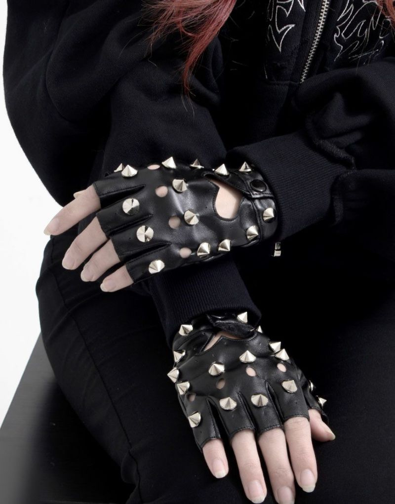 NOVESSEL【ノベセル】からハートデザインハーフフィンガーグローブ(両手2個セット)が登場しました。 ピラミッドスタッズを一面に敷き詰めハードに装飾したハーフフィンガーグローブのセンターにハートマークに型抜いたハード&キュートなデザインが魅力のオシャレ小物♪ この機会に是非お試しください! ※モデル画像は照明などの影響により実際の商品と異なる場合がございます。