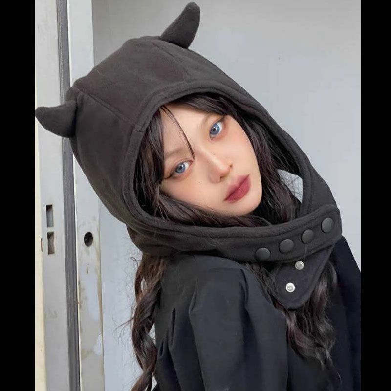肌触りの良いフリース素材を使用した、キュートな悪魔デザインの帽子。