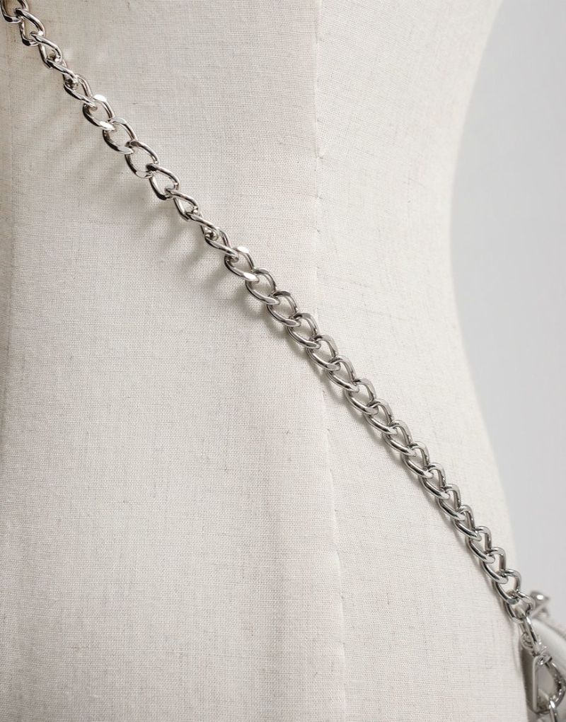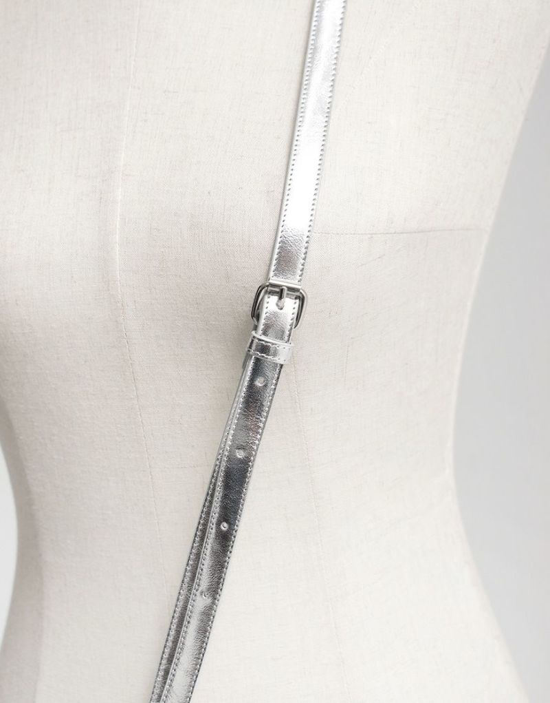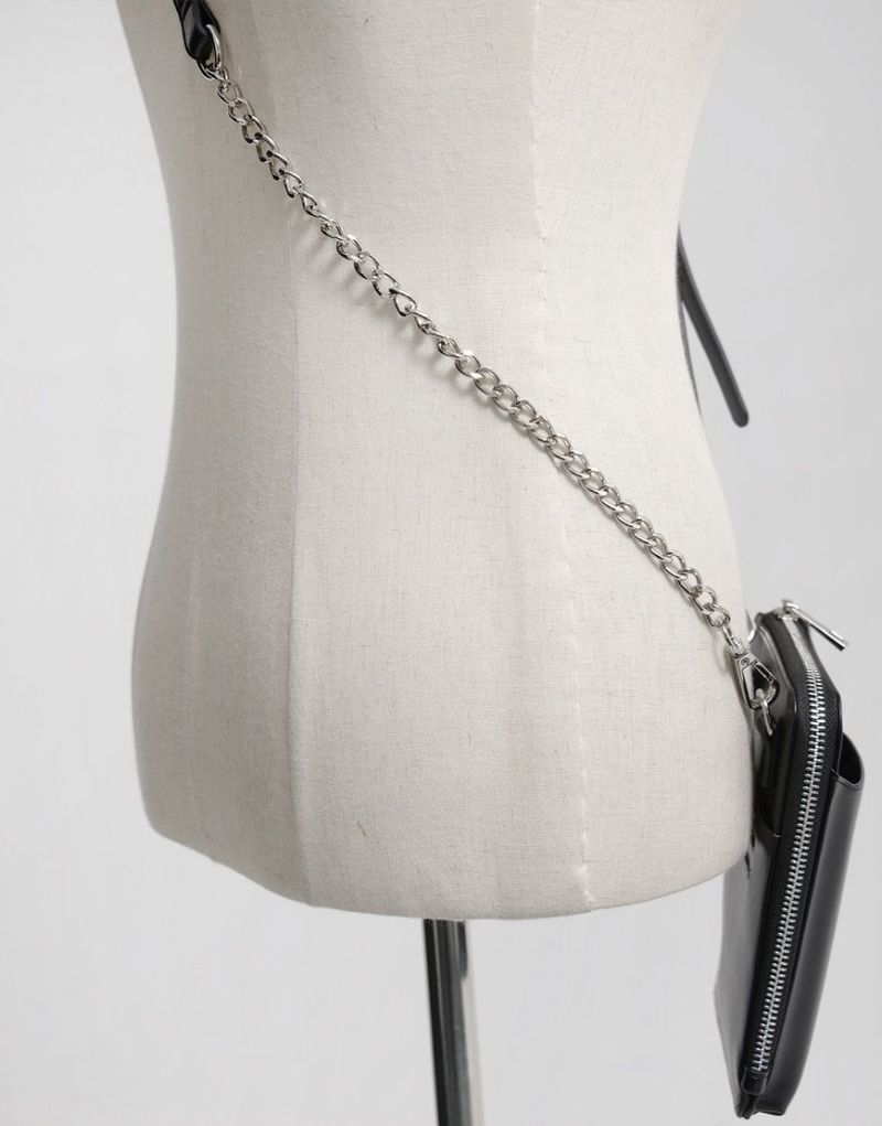 チェーンとPUレザー仕様のショルダーベルトは長さ調整ができ、カラビナ付きで取り外しも可能です。