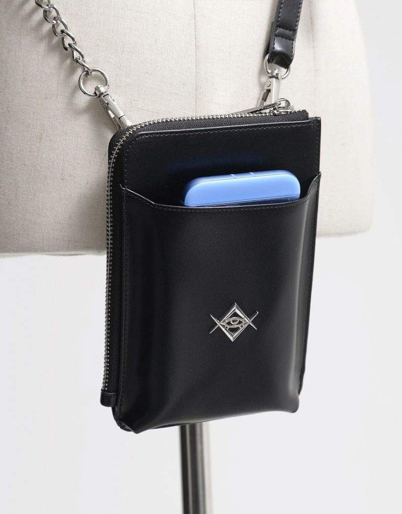 ブランドオリジナルThorn eyeロゴプレートを配置したPUレザーのスマホ用ポーチになります。