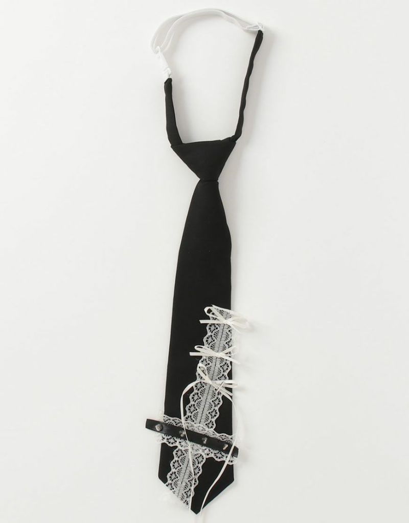 NOVESSEL【ノベセル】からレース使いネクタイが登場しました。 レース使いが特徴的なデザインネクタイ。 ゴシック系をはじめ幅広いスタイリングにお使いいただけます。 ユニセックスとしても着用可能ですので、この機会に是非お試しください。 ※モデル画像は照明などの影響により実際の商品と異なる場合がございます。