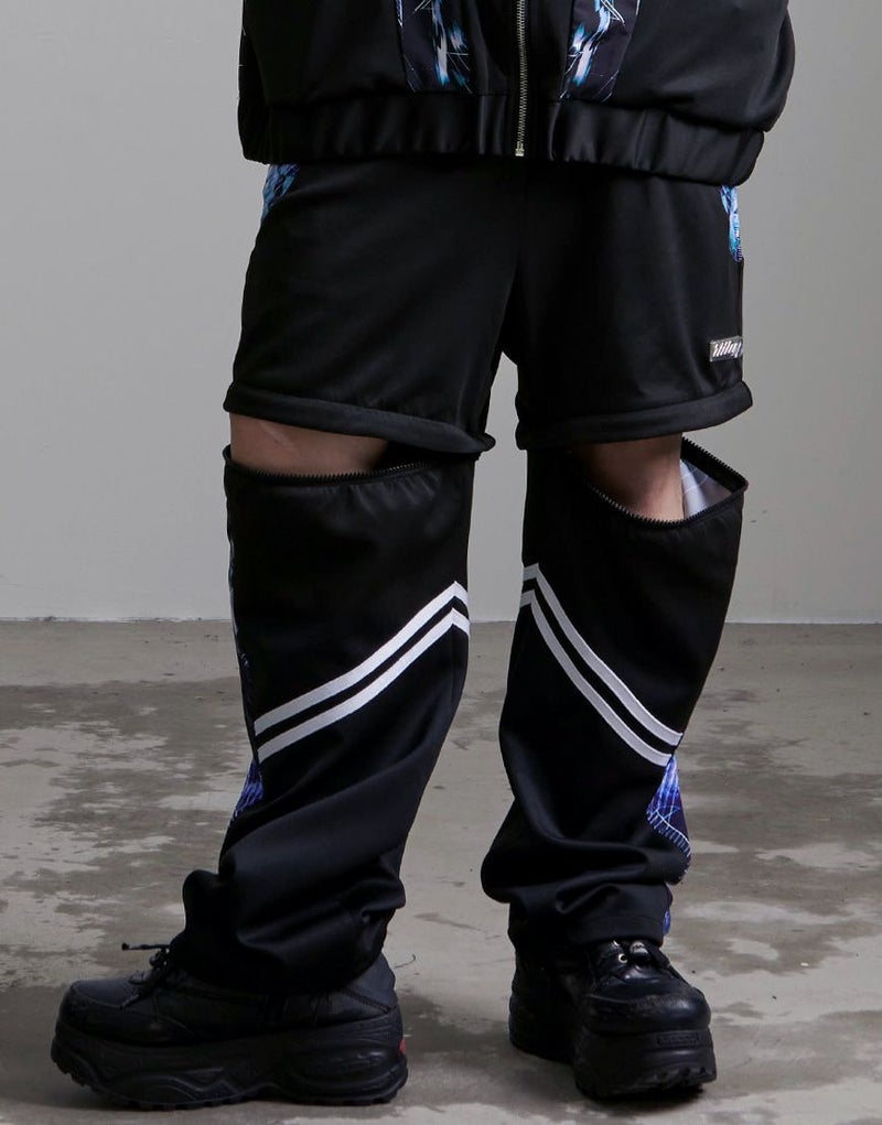 膝下をファスナーで取り外せるギミックが効いたジャージパンツ。