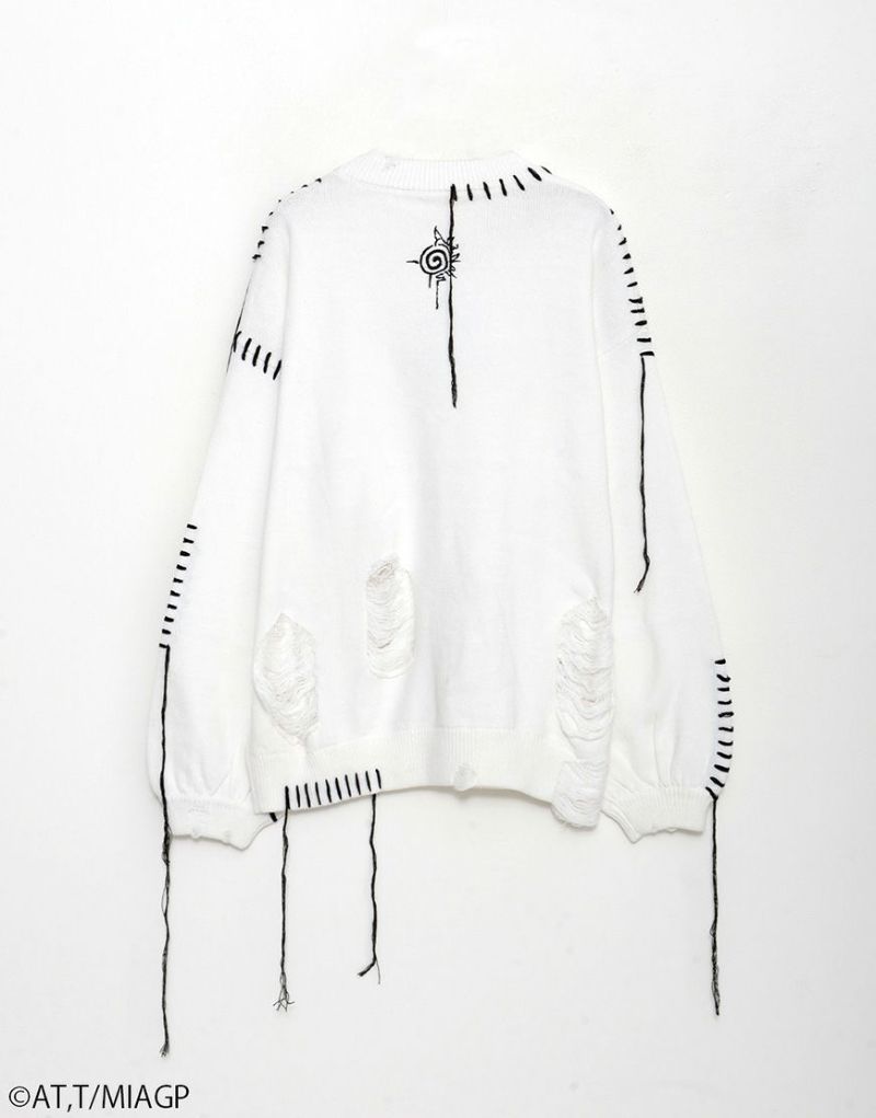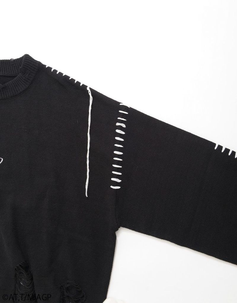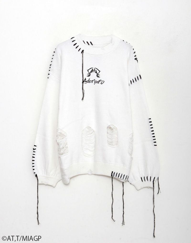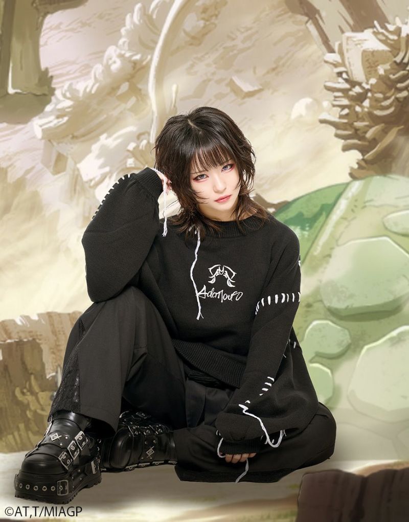 ボディ全体にはブロークン編み加工を施し、ほつれたようなディストーションが儚さと強さを併せ持ちます。