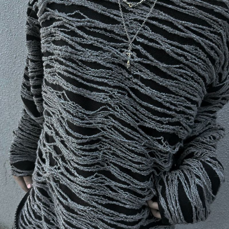スラブ糸を表側にて飛ばしを入れてグランジを表現しプルオーバーニットです。