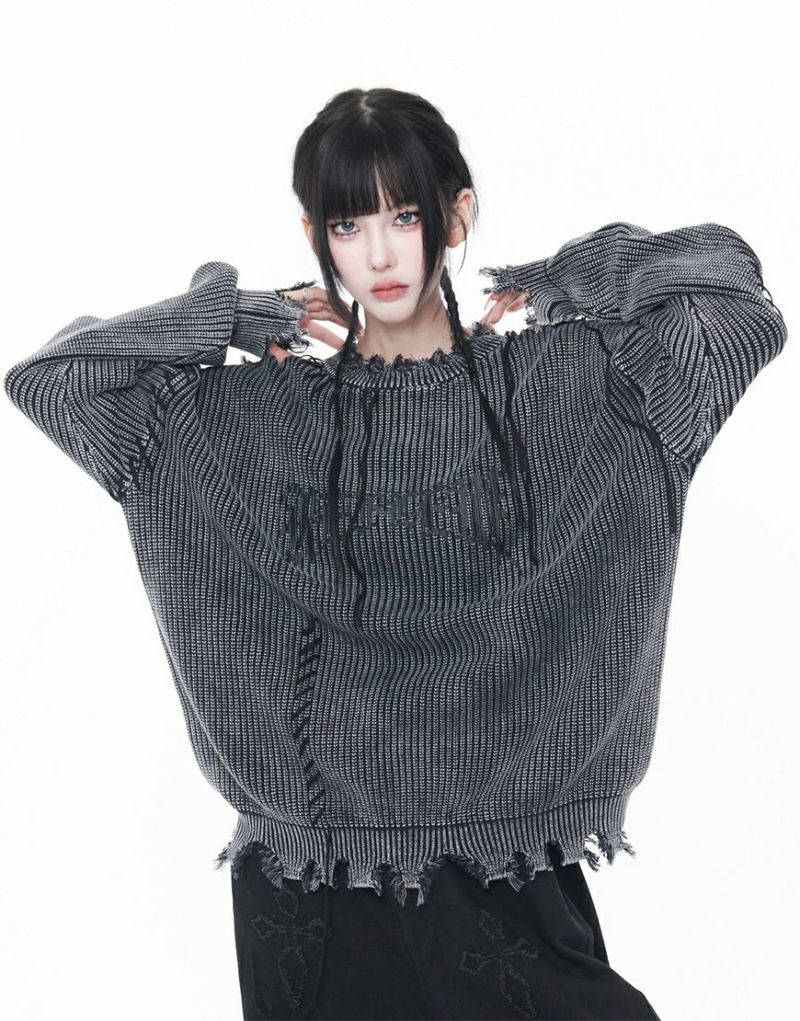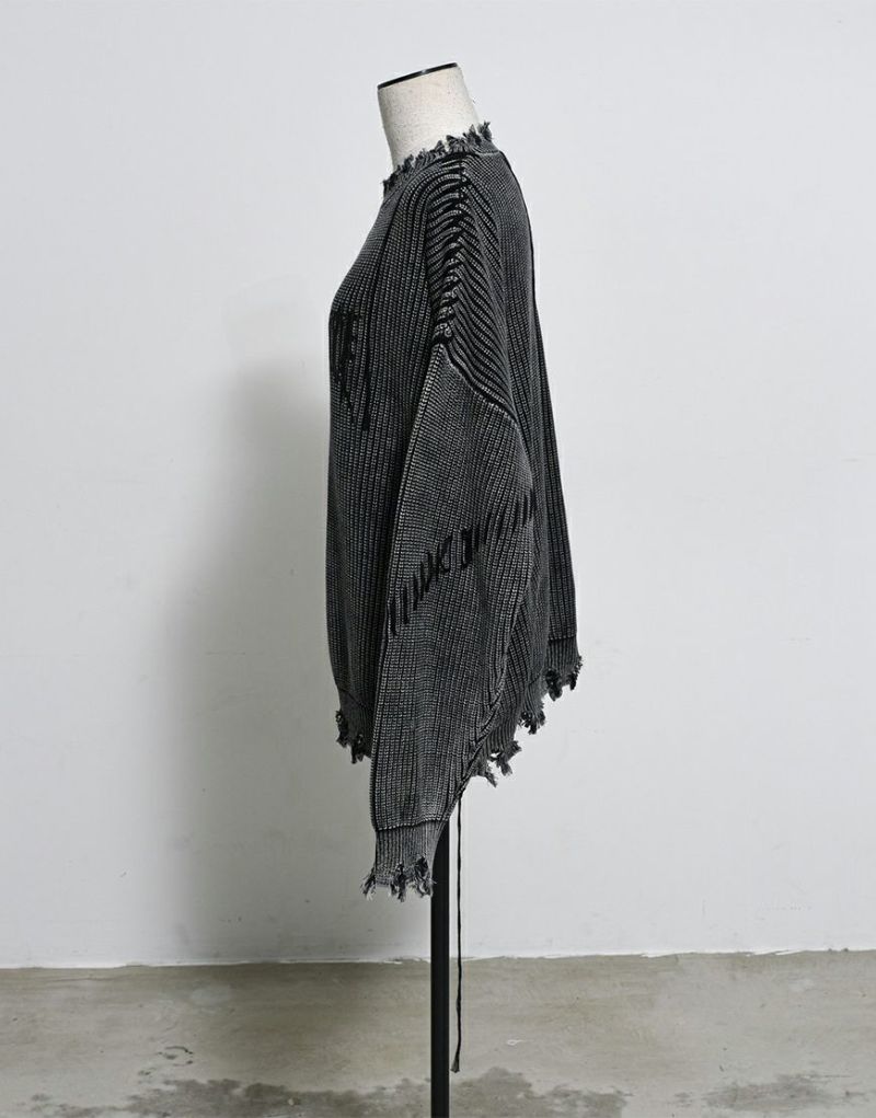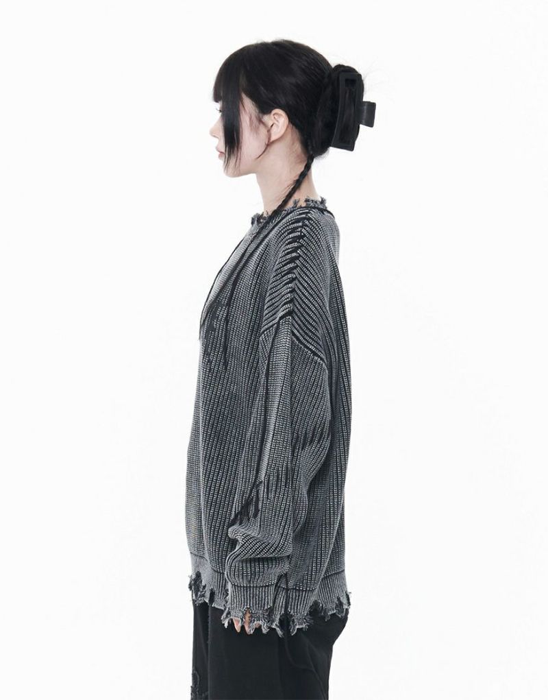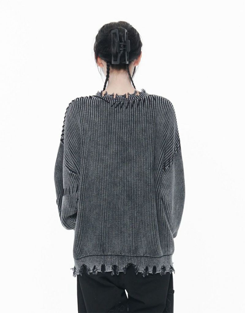 ネックや袖、裾にブロークン加工を施し、更にポイントで配色のステッチングを入れた拘りのニット。