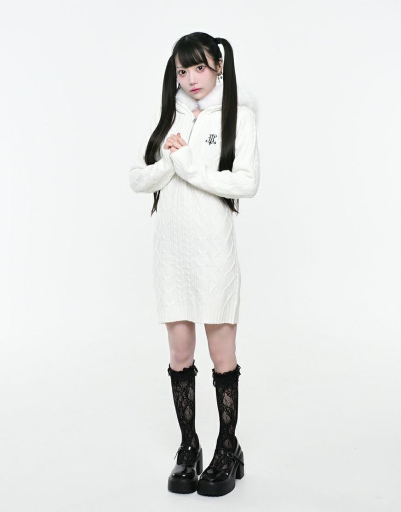 TRAVAS TOKYO"からクマ耳ファーフードケーブルニットワンピースが入荷。