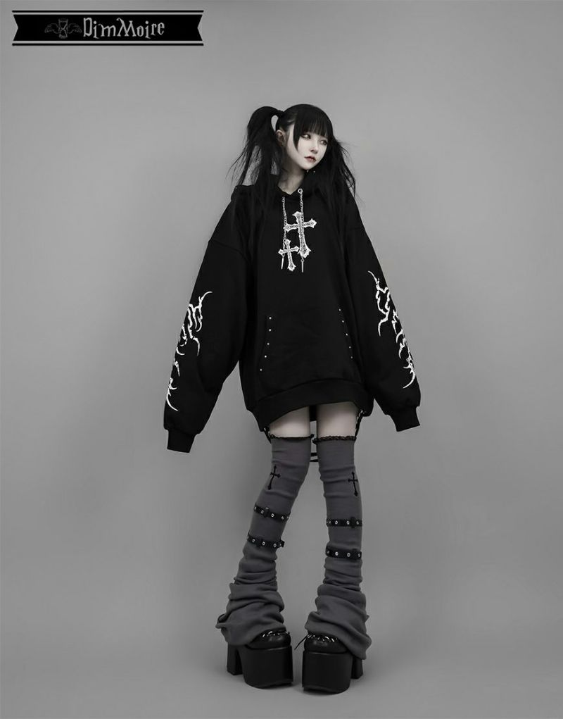 スタッズ、チェーン、裾ベルトがポイントとなったユニセックスアイテムです.