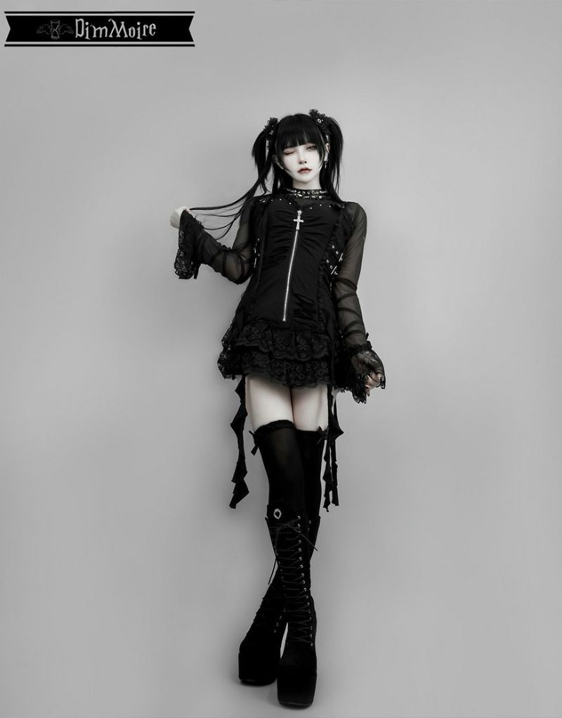 裾にかけて重なるレースと垂れたリボンは、退廃的でありながらも儚く、揺れるたびに幽かな気配を漂わせます.