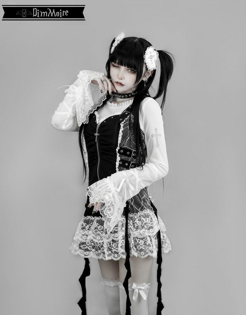 裾にかけて重なるレースと垂れたリボンは、退廃的でありながらも儚く、揺れるたびに幽かな気配を漂わせます.