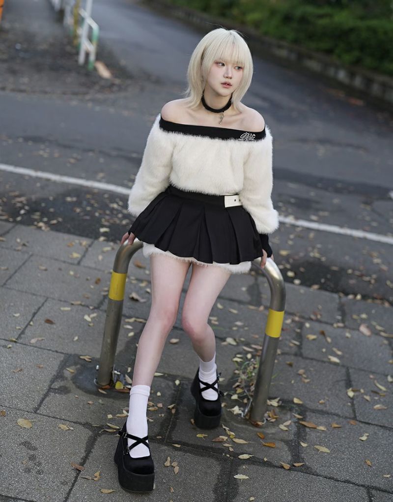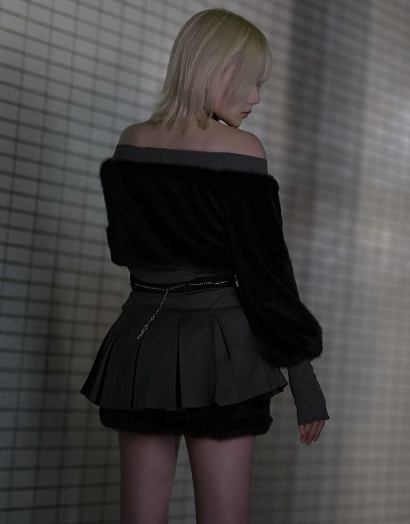 ファースカートはウエストはぴったりで骨盤からファーが付いていてスタイルがよりよく見えます