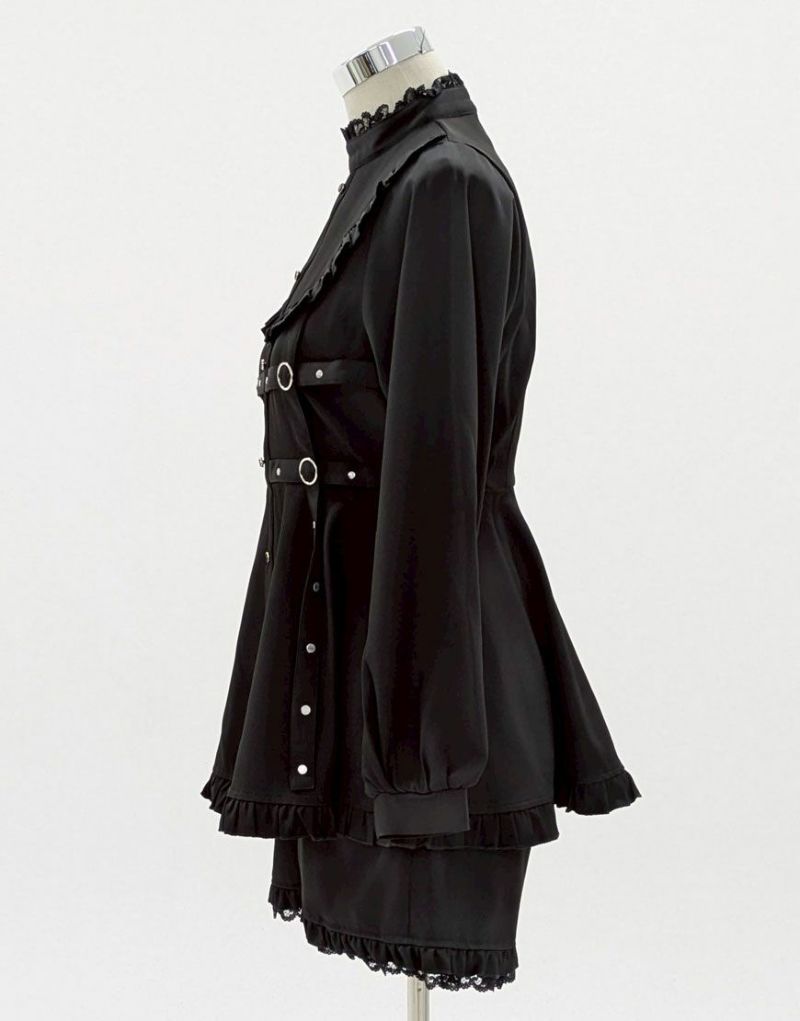 ハーネス風のデザインが特徴的なペプラムセットアップ。