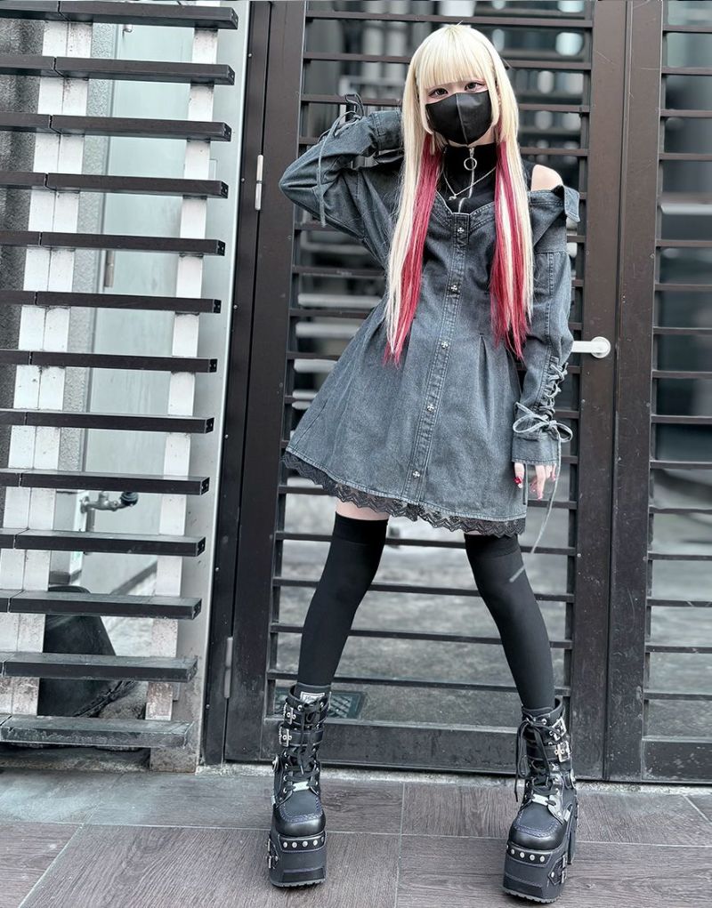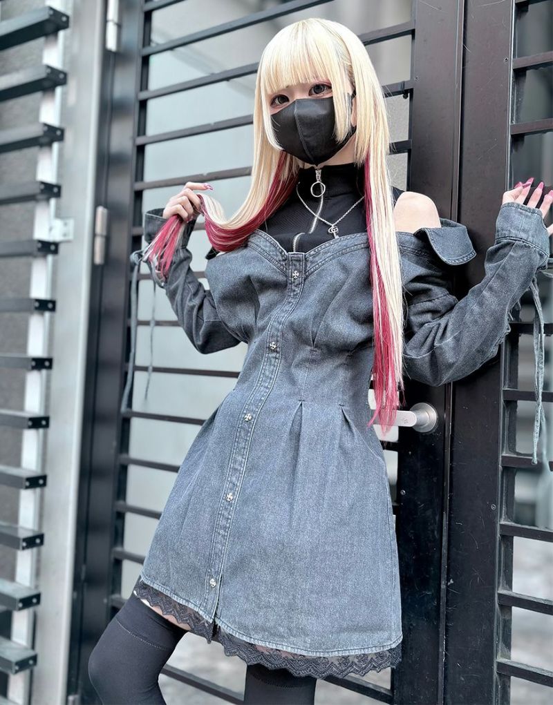 地雷ちゃんのモテに全振り!オフショルダーデニムワンピースの登場です。