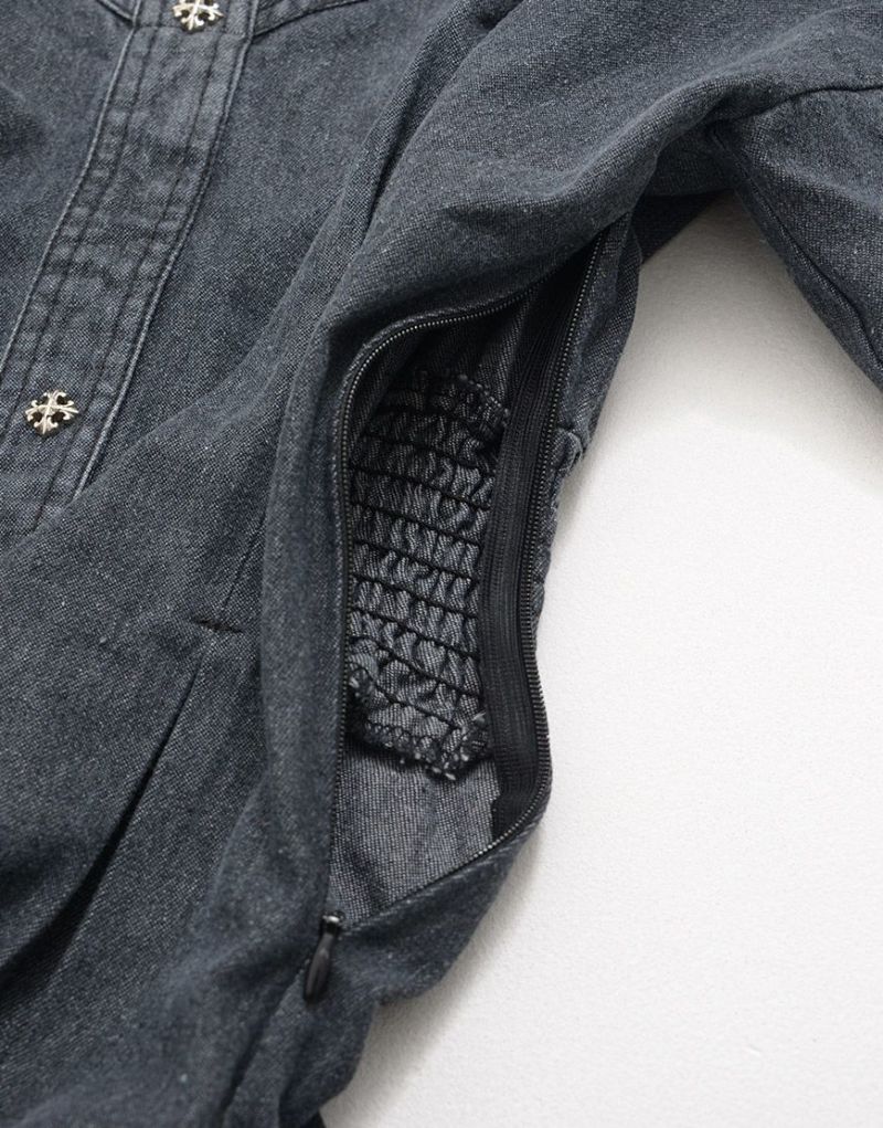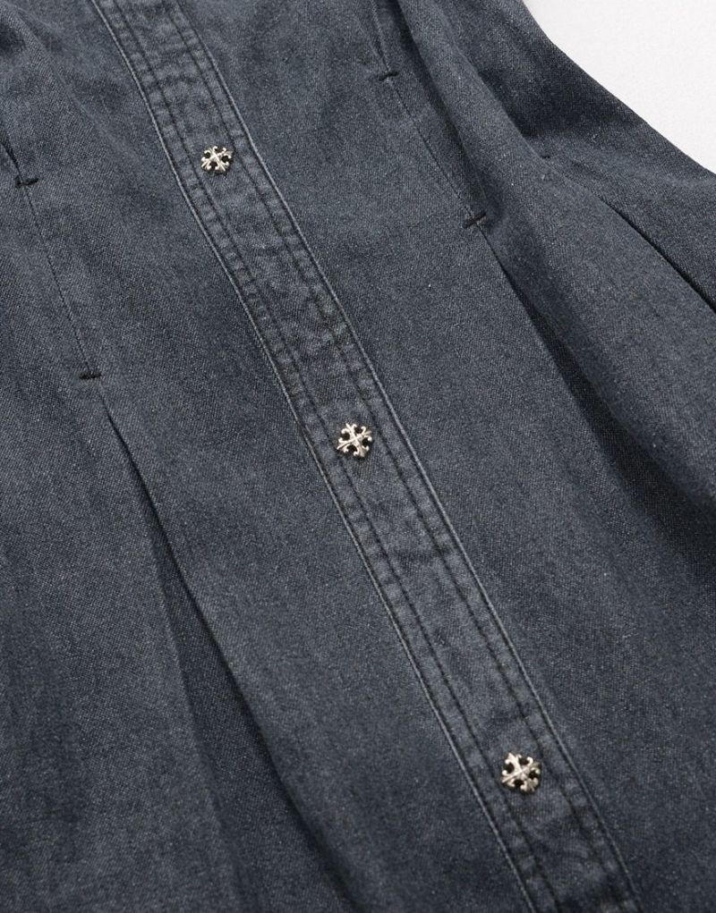 洗い加工を施したデニム生地は、どこか物憂げで、でも視線を集める存在感。