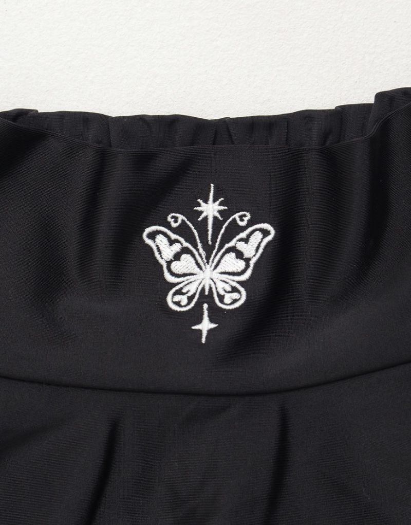 蝶モチーフの刺繍やレースアップでディテールも抜かりなし。