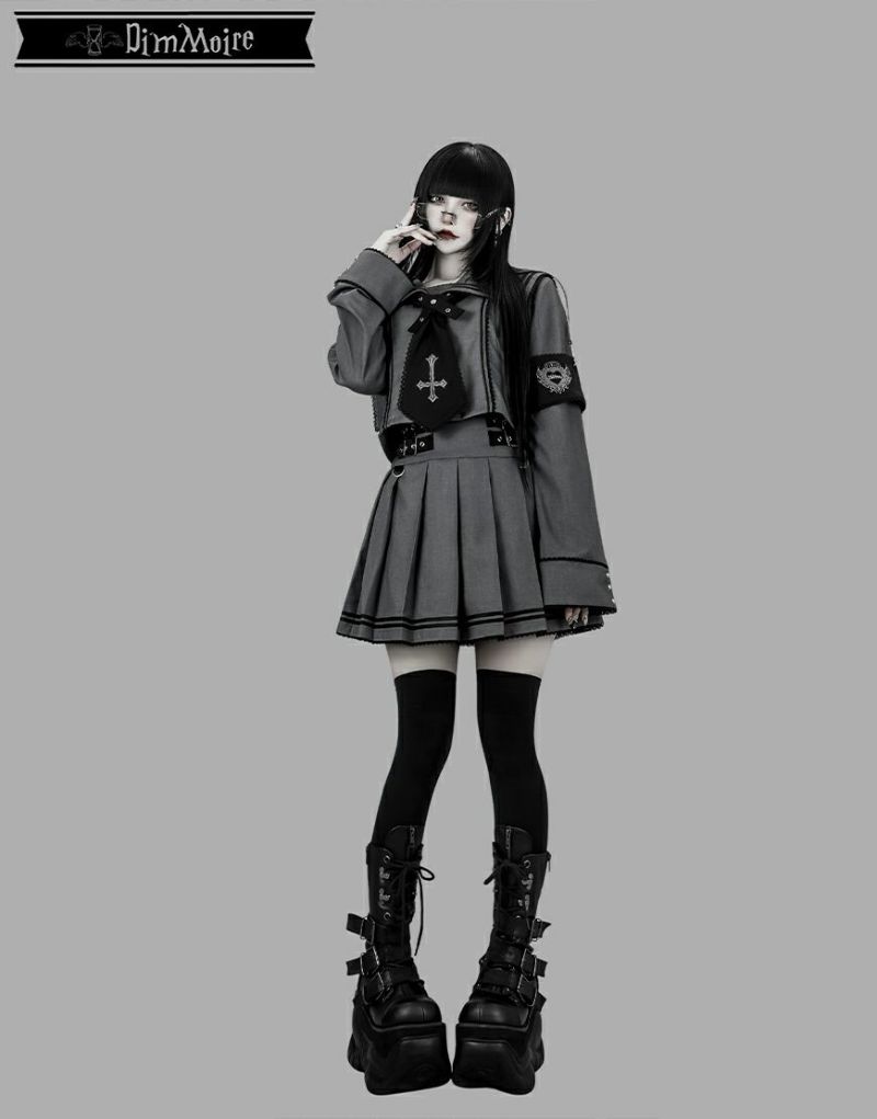 【こちらはGrayの購入ページです】 ・.━━━━━━━ † ━━━━━━━.・ DimMoire学園のNEW制服が登場 トップス+スカートのセットアップです. 刺繍を施したセーラー襟×ネクタイ×腕章が象徴となり、DimMoireらしい世界観と特別感を放つデザインに仕上げました スカートのウエストは後ろ半分がゴム仕様になっております◎ モデル身長:155cm 着用サイズ:Mサイズ ・.━━━━━━━ † ━━━━━━━.・ ※この商品は1点までのご注文とさせていただきます。