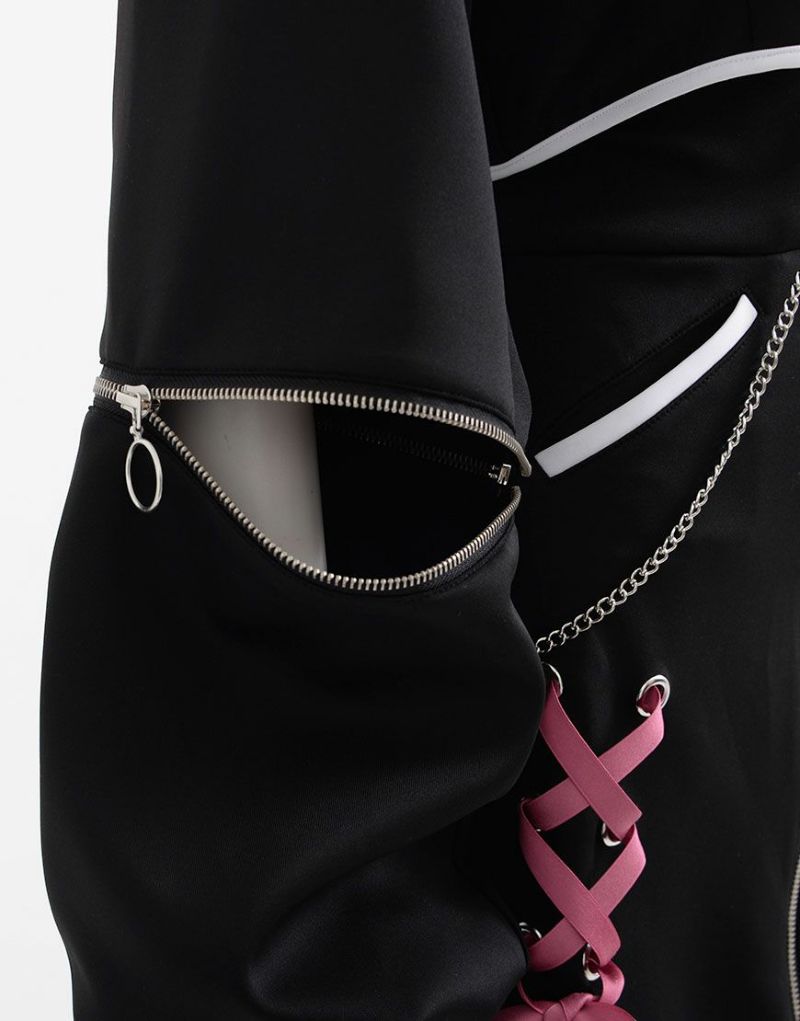 スカートにはフロント左右にレースアップデザインを施し地雷感を演出しました☆