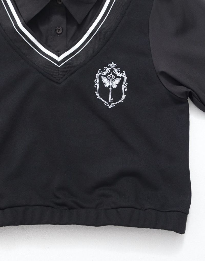 シャツ部分はフェイクレイヤードデザインになっており、1枚でおしゃれに決まる◎