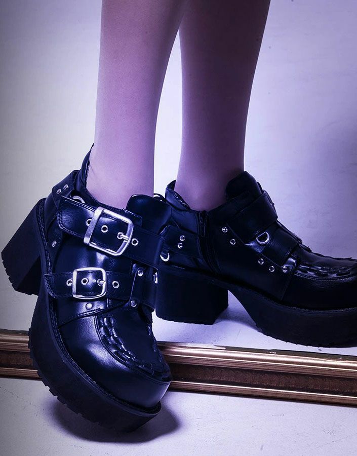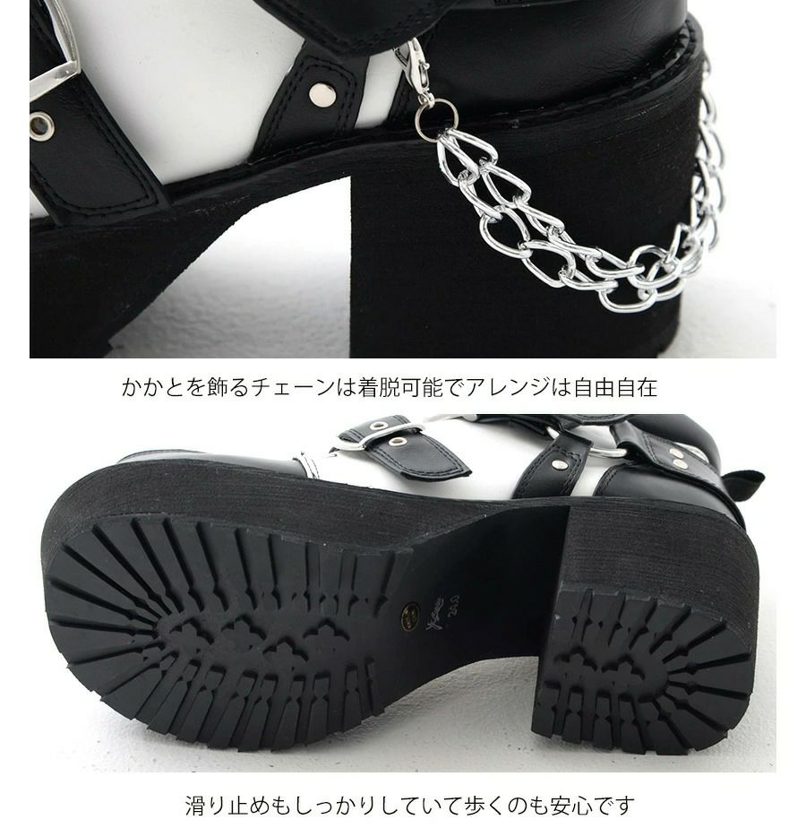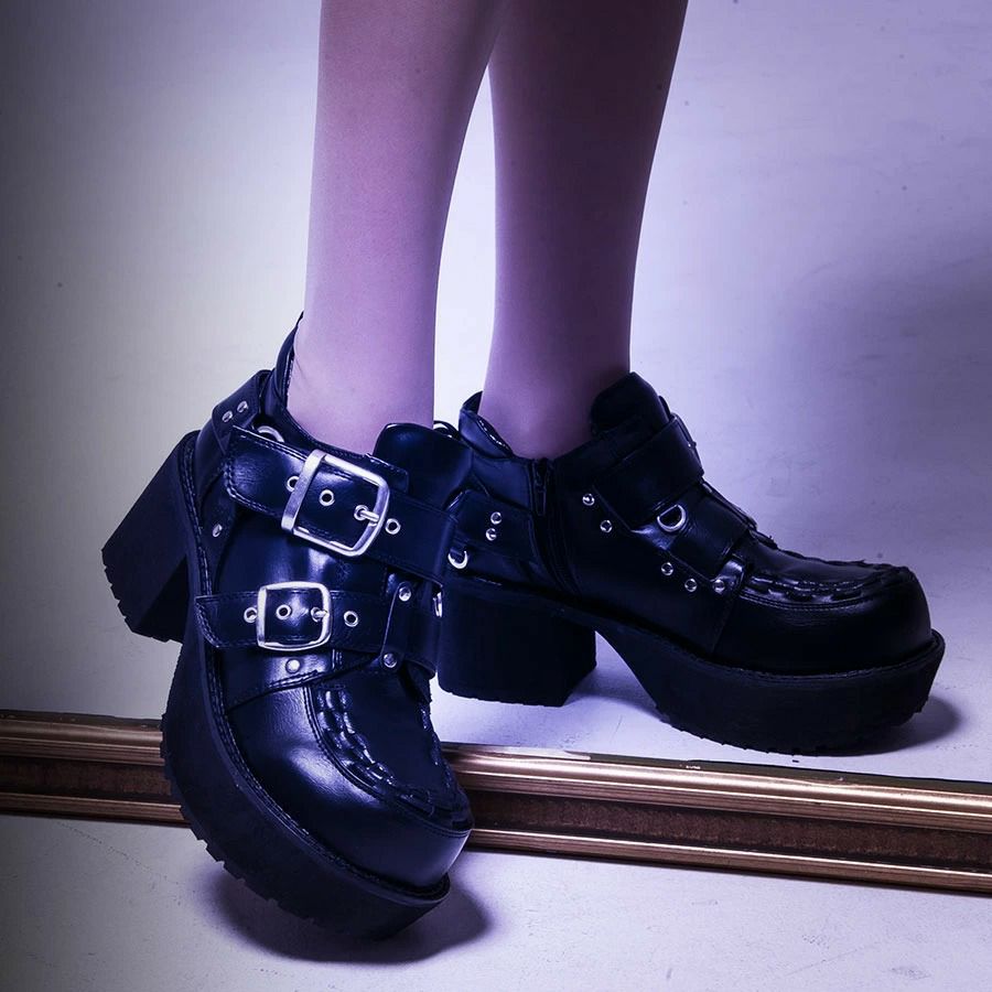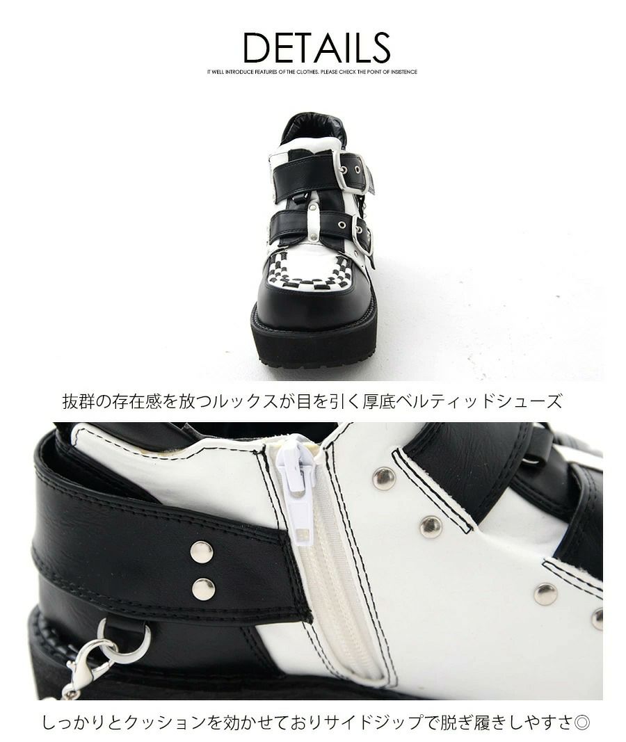 個性的なデザインで話題のYOSUKEから レディースの厚底ベルテッドシューズが入荷! ボリューム感のある底周りが目を引く、厚底ベルテッドシューズ。 かかとにはチェーンをあしらい、ダークな雰囲気に。 印象的な太めのダブルベルトもポイント。 パンクスタイルやV系スタイルにお勧めです。 同デザインのメンズモデルもあります♪ ゴス、パンク、ロック、ゴシックと相性抜群の ロックなヴィジュアルは抜群にかっこよくオススメです。