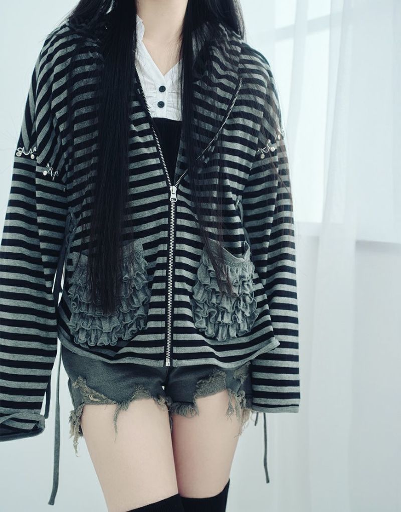 不気味に惹かれるあなたの感性、ダストデビルが叶えてあげる 【DustDevil】 producer/すかる デビルっぽいシックなデザインに天使のようなフリルをミックスしたパーカー 薄い生地と優しい肌触りで、肌寒い日の羽織や日焼け対策としても着られます。 ※お一人様各色2点までの購入の制限とさせていただきます。