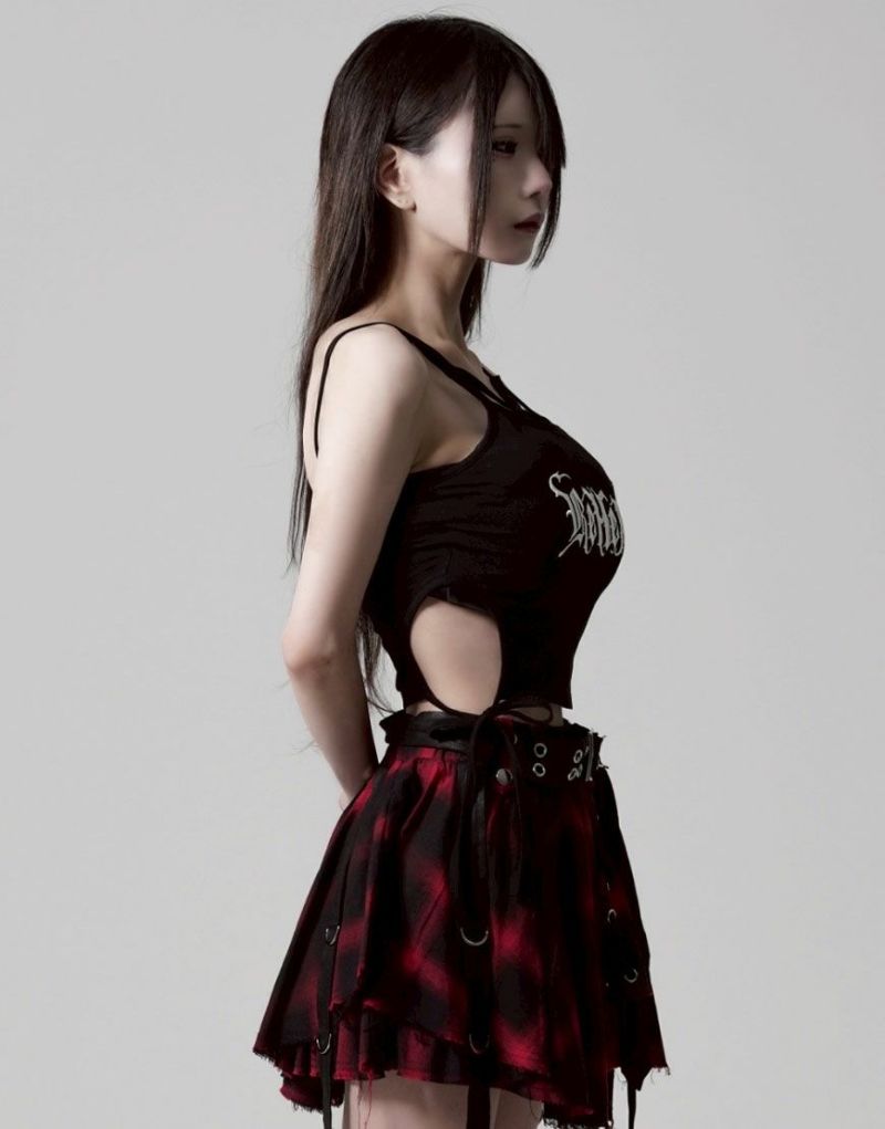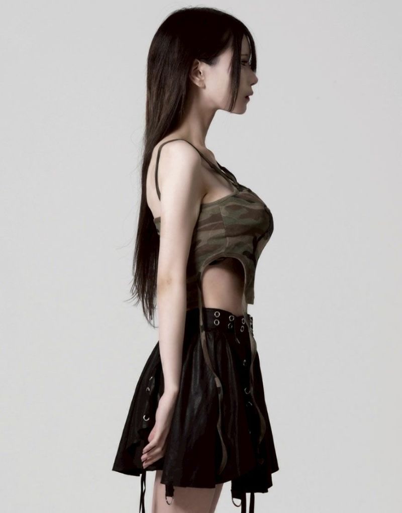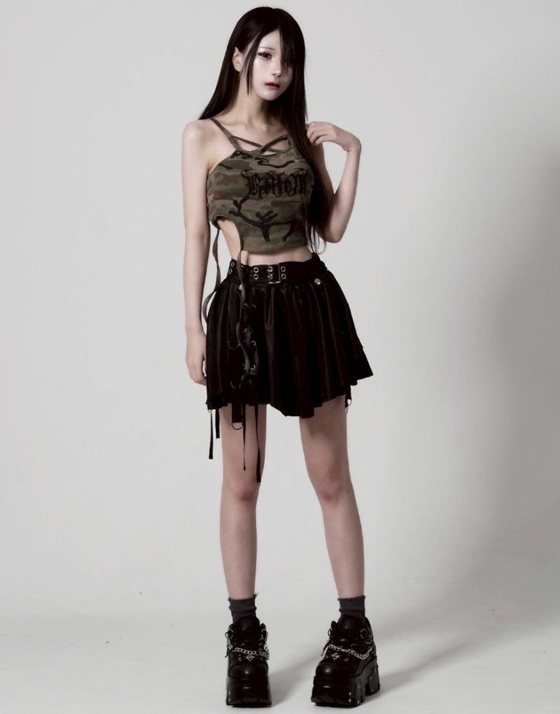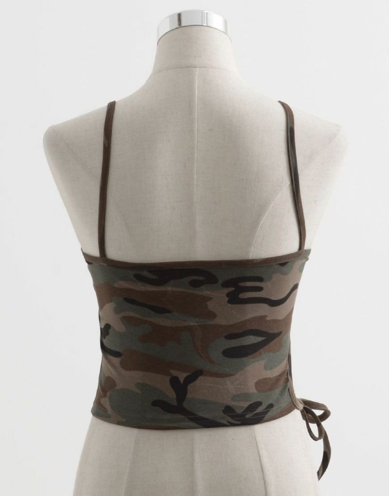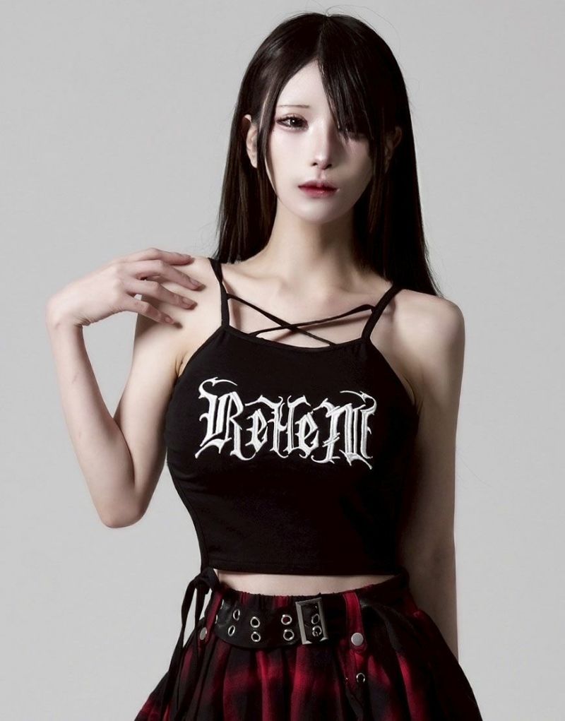 デコルテを美しく魅せるクロスストラップのデザインがポイントで、1枚でもレイヤードでも着映えするアイテムです。