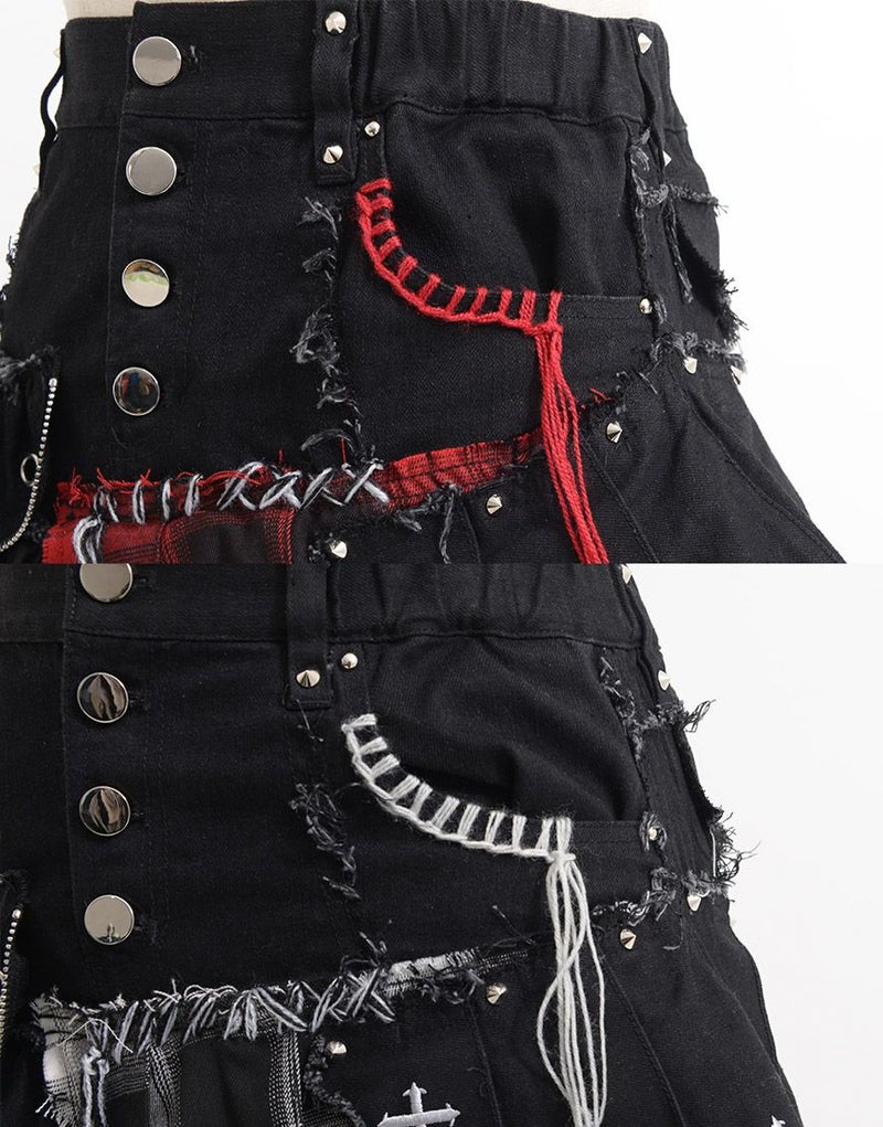 ブラックデニム×チェック生地をドッキングさせた、存在感抜群のデザインです。
