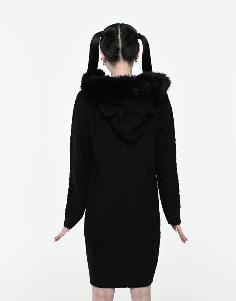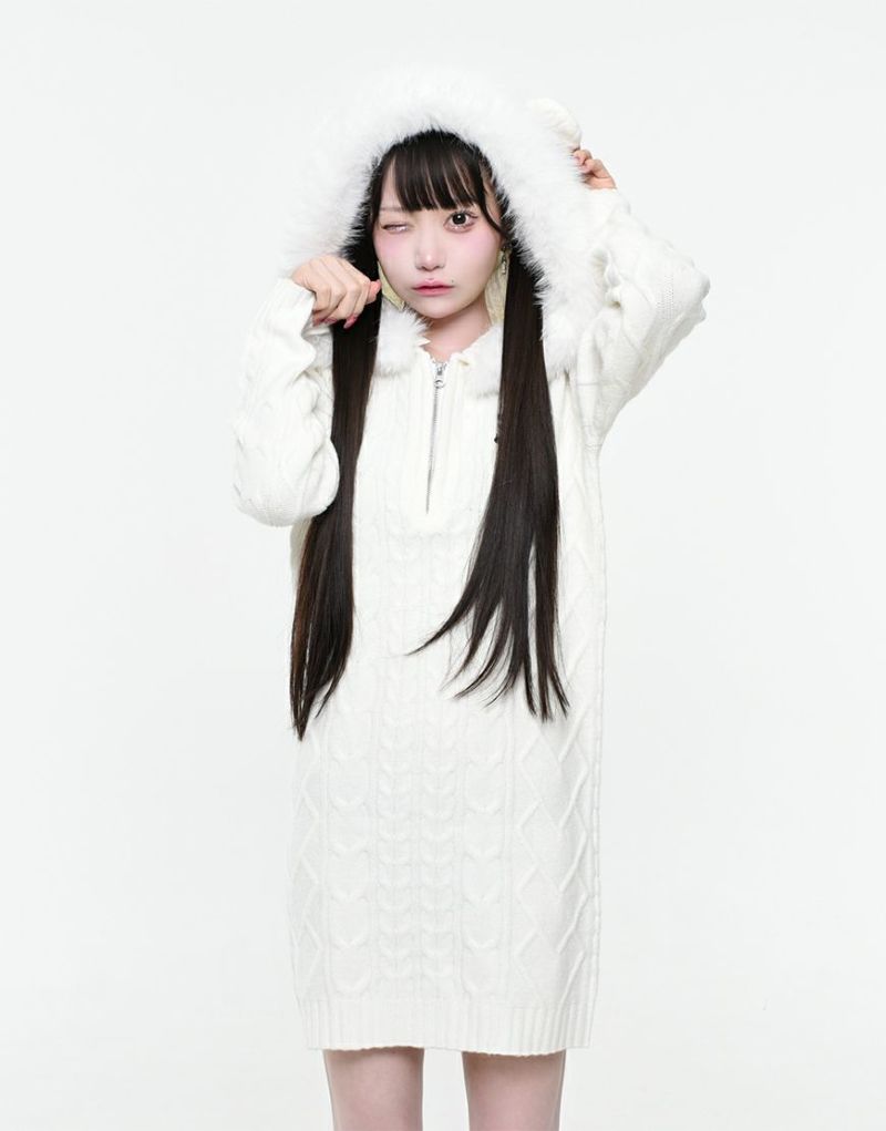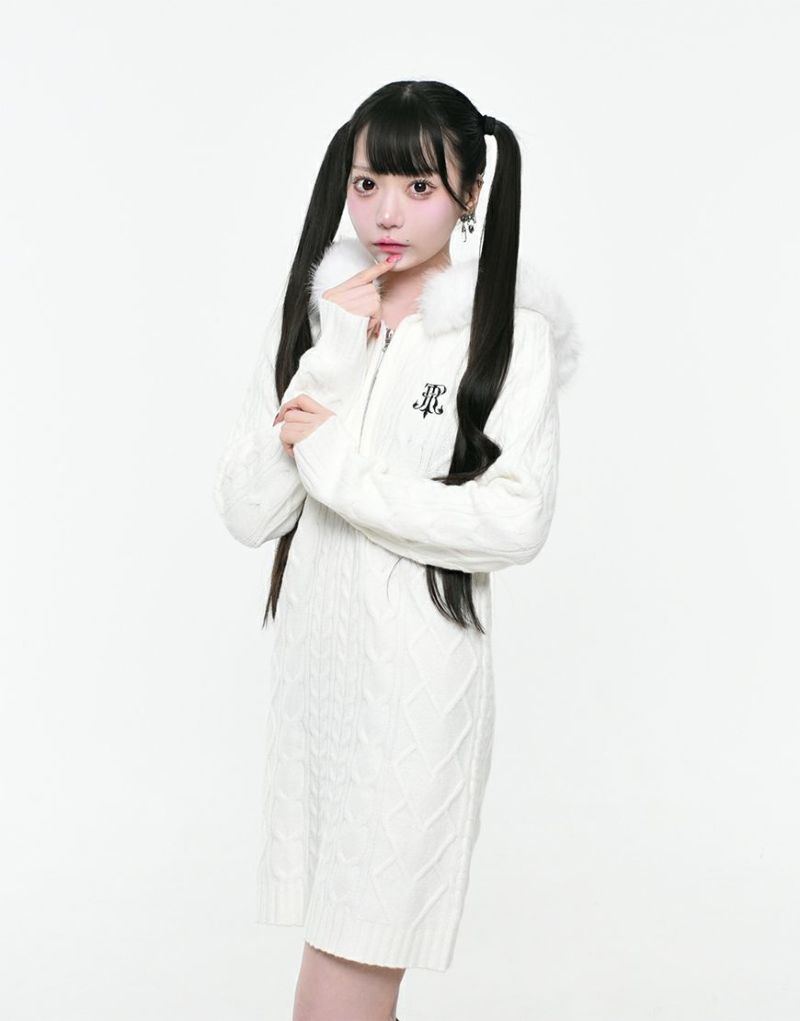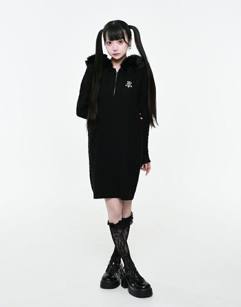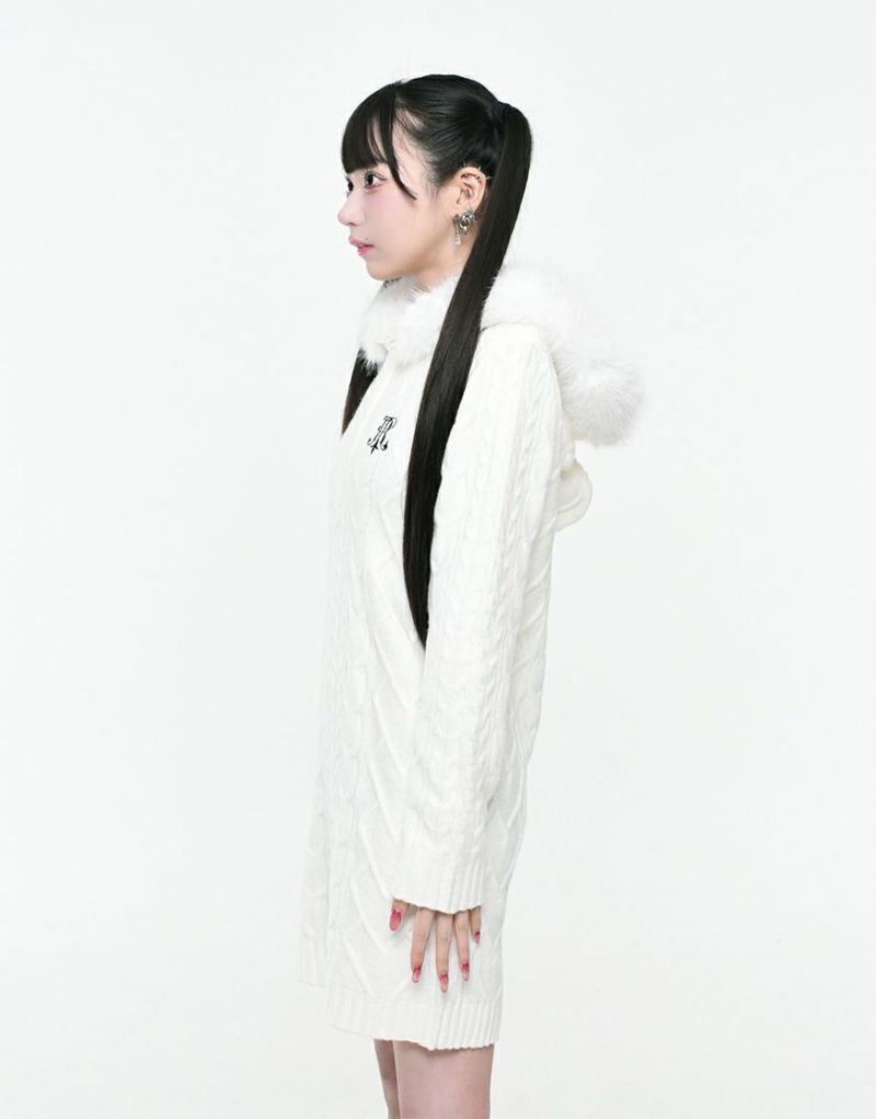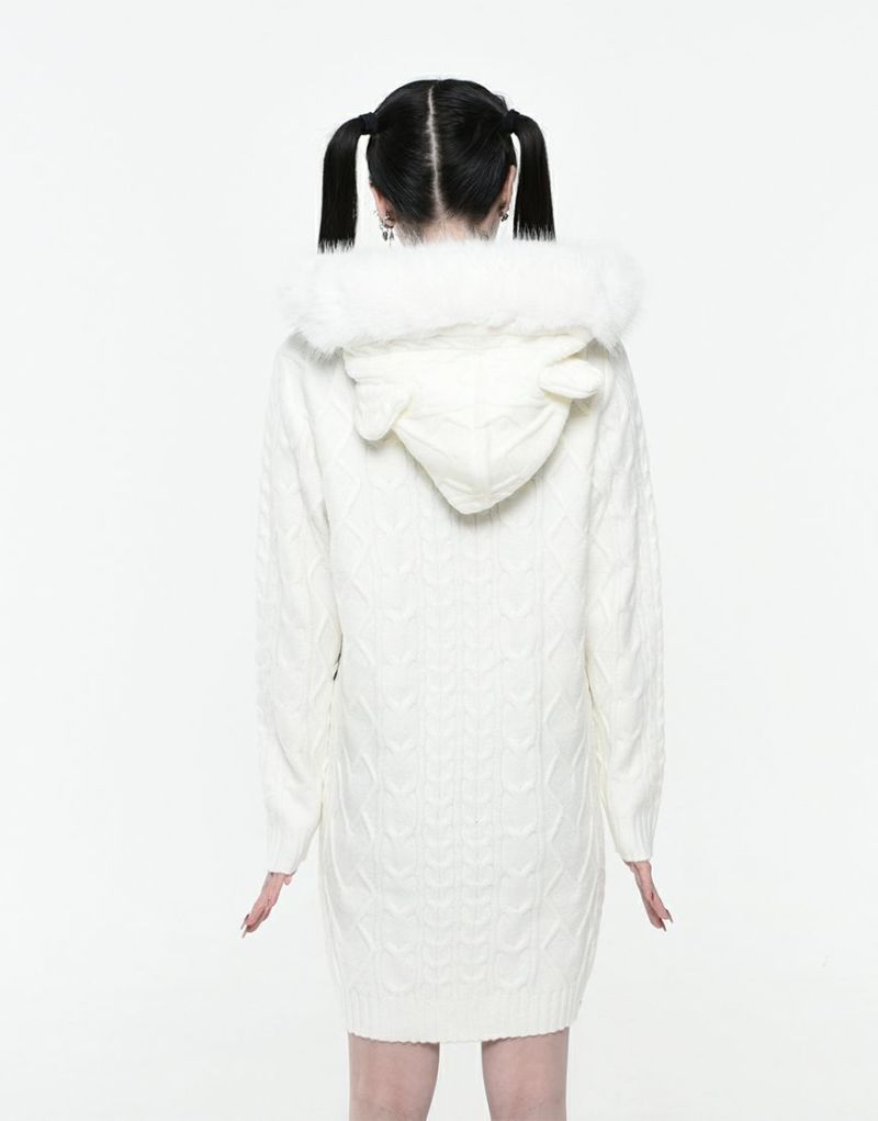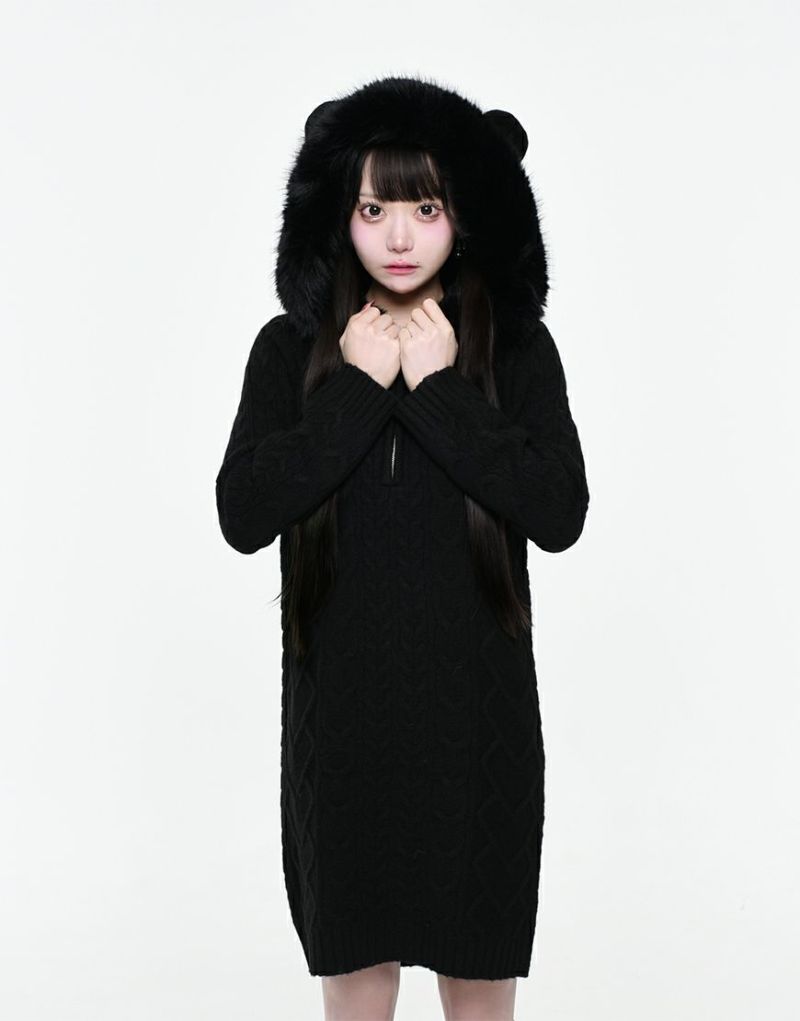 TRAVAS TOKYO"からクマ耳ファーフードケーブルニットワンピースが入荷。