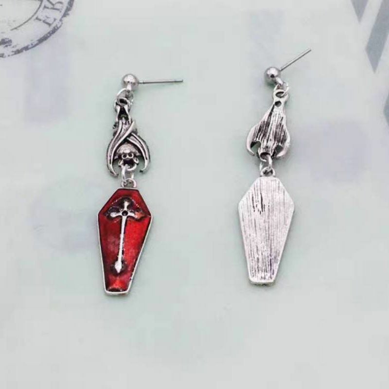 NOVESSELからクロスピアス(両耳用)が登場しました。 赤い棺が目をひく両耳セットのピアス。 ロック系のスタイリングは勿論、ピープス系やストリートスタイルのアクセントにもおすすめ◎。ユニセックスとしても着用可能ですので、是非お試しください! ※モデル画像は照明などの影響により実際の商品と異なる場合がございます。
