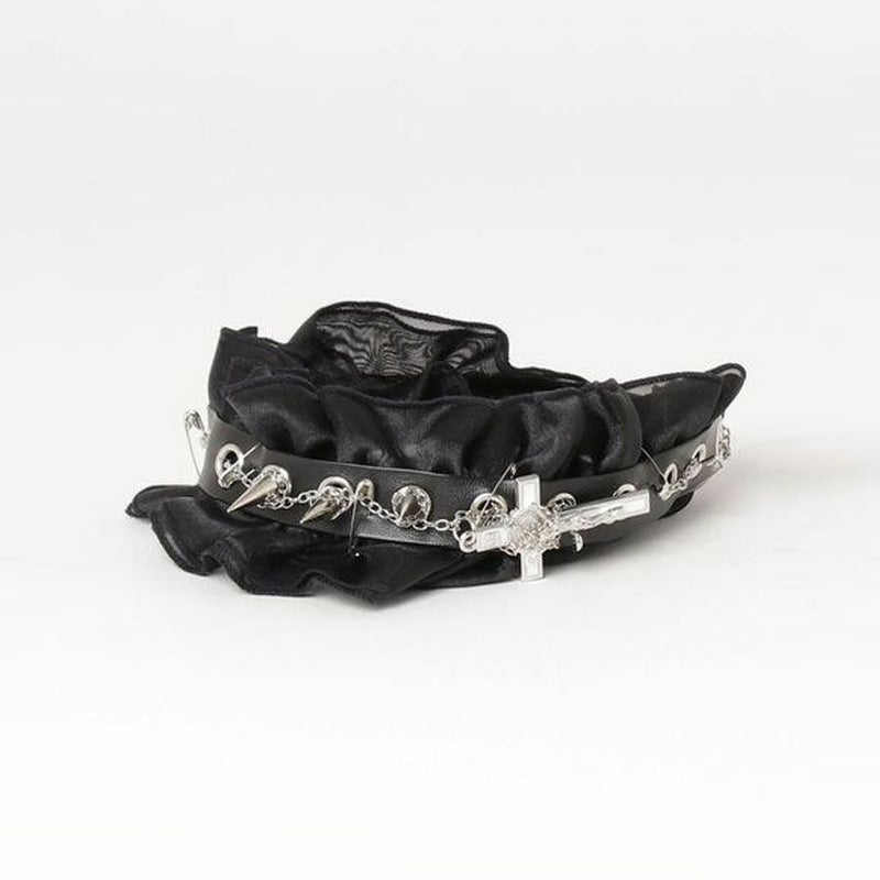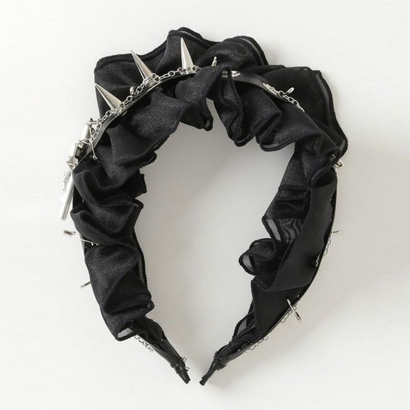 NOVESSELからスパイクレースヘッドドレスが登場しました。 ハードな印象を与えるスタッズを使いながらも、レース素材をメインに使うことでキュートなデザインに仕上げたヘッドドレス。 地雷系ファッションから闇可愛い系のスタイリングまで幅広くお使いいただけます♪ コーディネートのちょっとしたアクセントに是非お試しください!