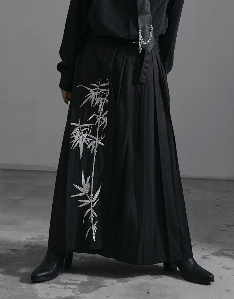 NOVESSELから和モード刺繍スカートが登場しました。 フロントに施された刺繍デザインが目をひくロングスカート。 モードスタイルをはじめ、様々なスタイリングに相性抜群◎ ユニセックスとしても着用可能なデザインですので、是非お試しください!