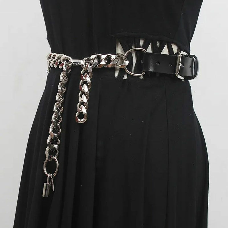 NOVESSEL【ノベセル】南京錠付きチェーンベルトが登場しました。 インパクトある喜平の太チェーン先端に南京錠をぶら下げた存在感抜群のベルト。 パンク、ロック系のスタイリングは勿論、キレイめやストリートスタイルのアクセントにもおすすめ◎ ユニセックスとしても着用可能ですので、是非お試しください! ※モデル画像は照明などの影響により実際の商品と異なる場合がございます。