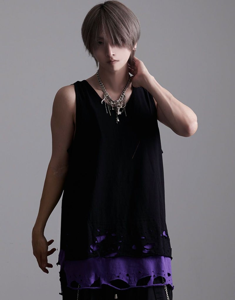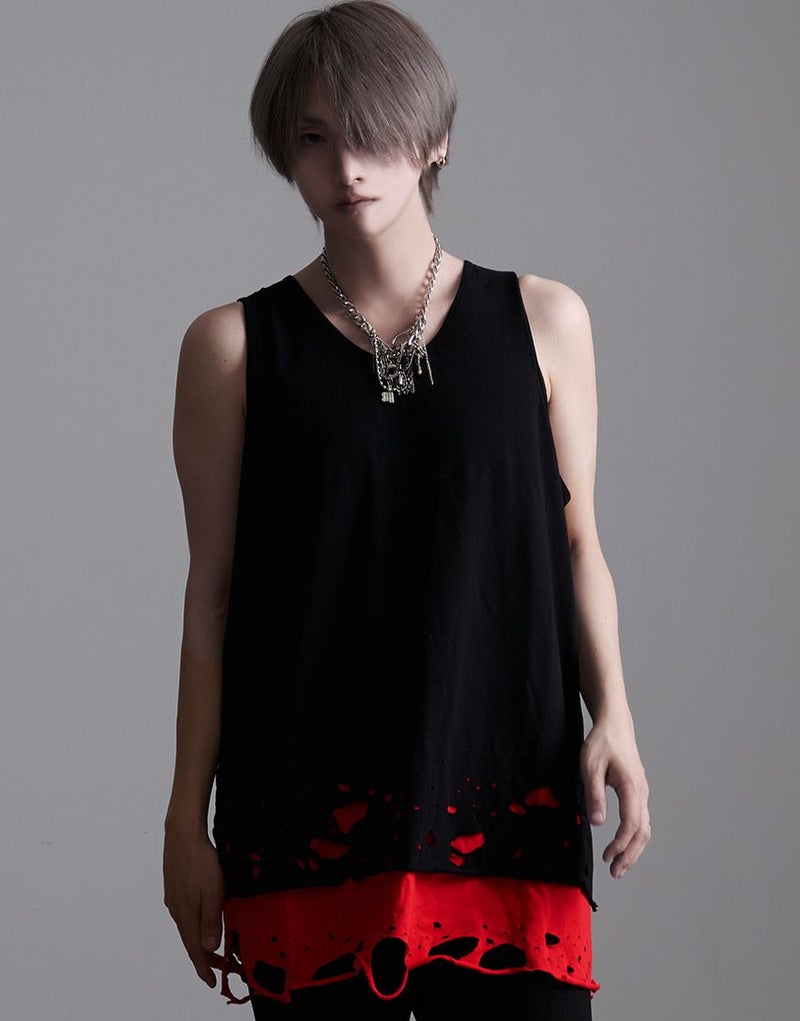 NOVESSEL【ノベセル】より裾クラッシュ加工のフェイクレイヤードタンクトップがカラーバリエーション新たにして4色で登場。