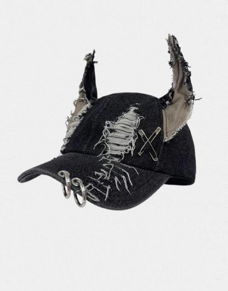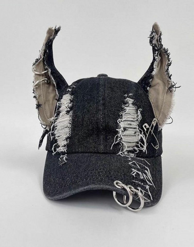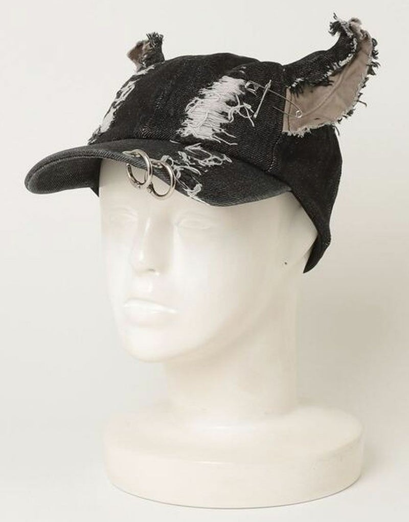 NOVESSEL【ノベセル】から耳付きダメージデニムキャップが登場。耳付きデザインが目をひく個性派デニムキャップ。 ダメージ加工やリングピアスなどの装飾デザインも魅力◎ カジュアル、ストリートは勿論、トレンドのグランジ系にもお使いいただけますので是非お試しください♪ ※モデル画像は照明などの影響により実際の商品と異なる場合がございます。