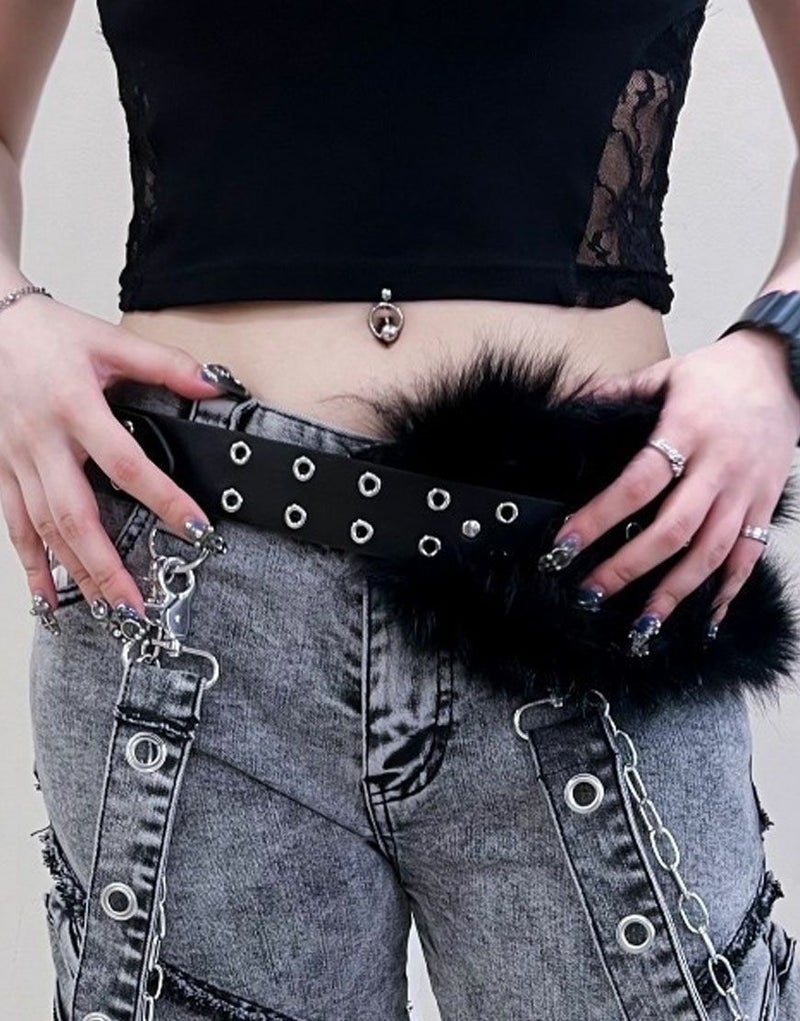 NOVESSEL【ノベセル】からファー付きハトメベルトが登場しました。 トレンド感漂うファー素材が目をひくハトメデザインベルト。 ストリートスタイルは勿論、y2kやグランジスタイルにも相性抜群◎ ユニセックスとしても着用可能ですので、是非お試しください!