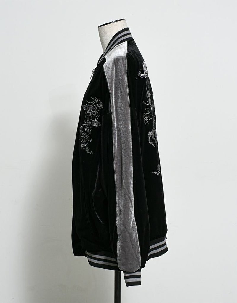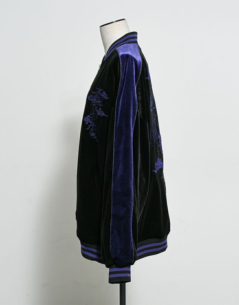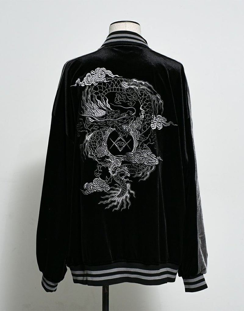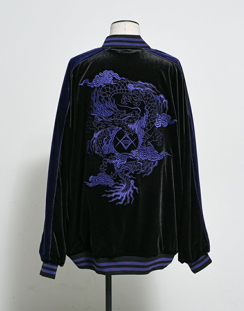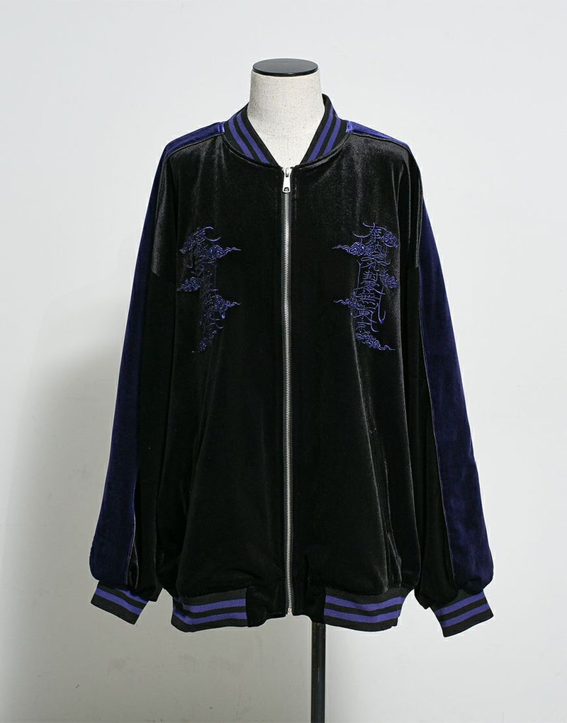 両胸&背面にオリジナル刺繍を施したベロアスカジャンになります。
