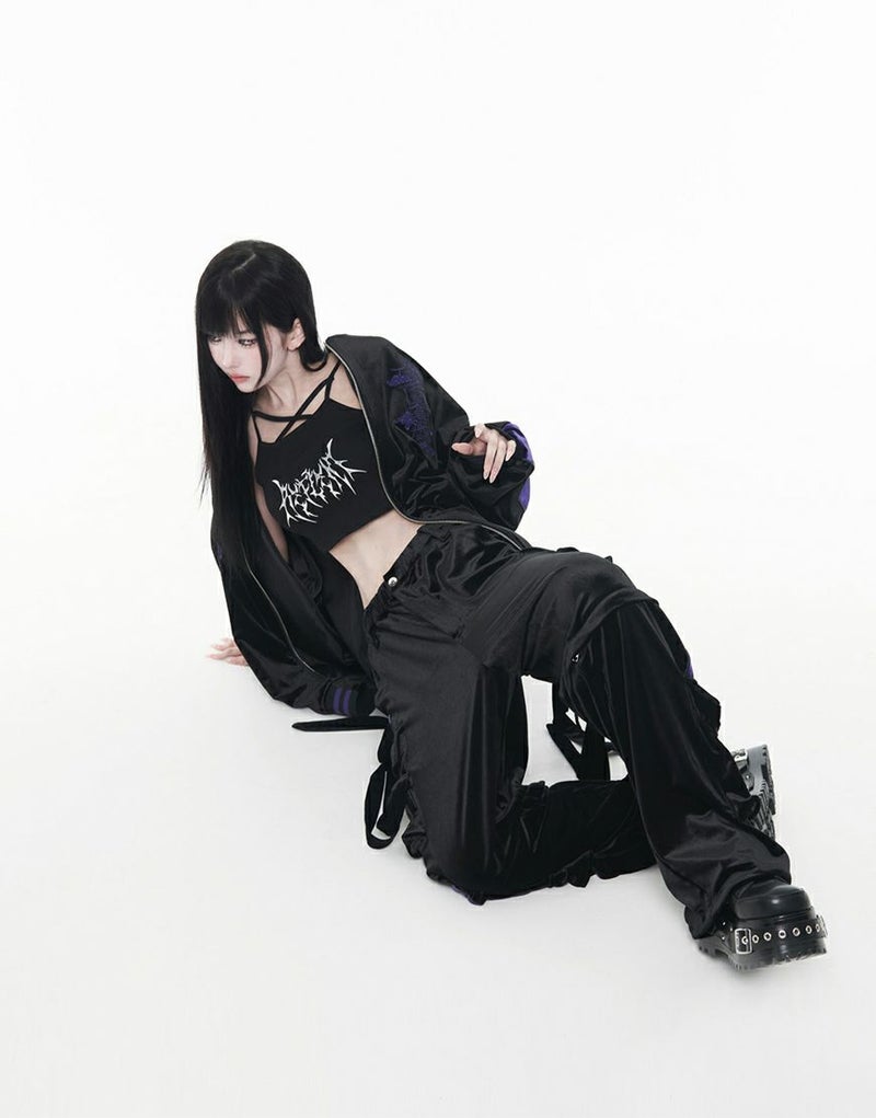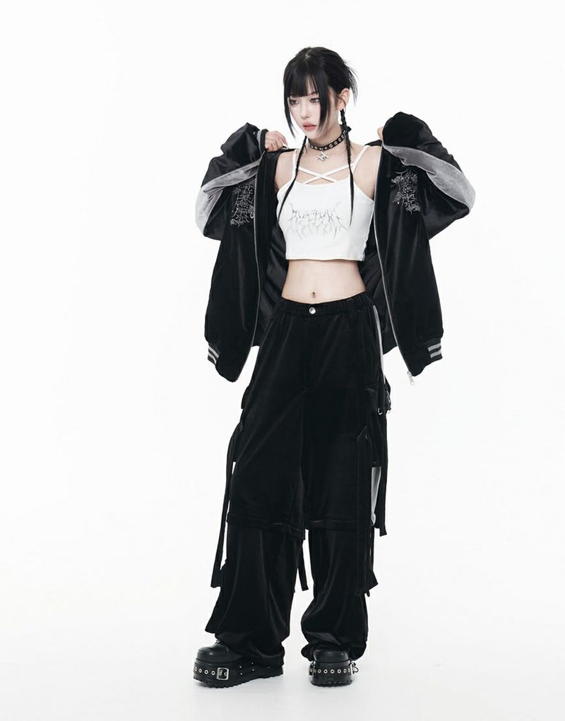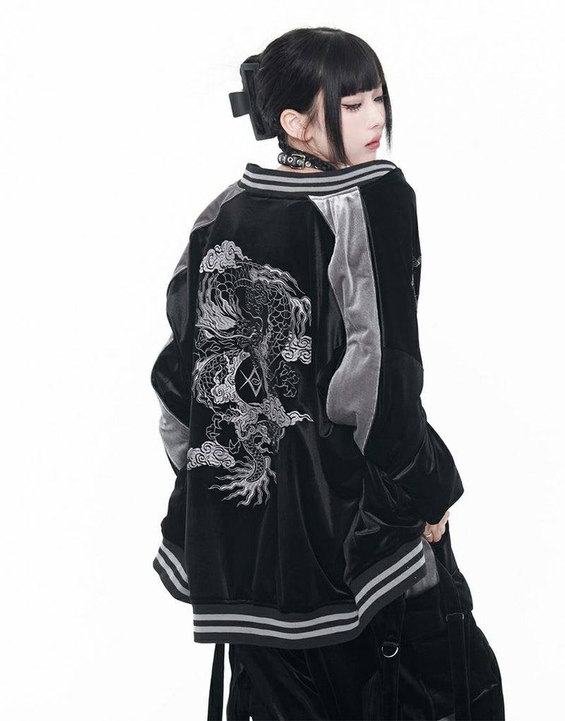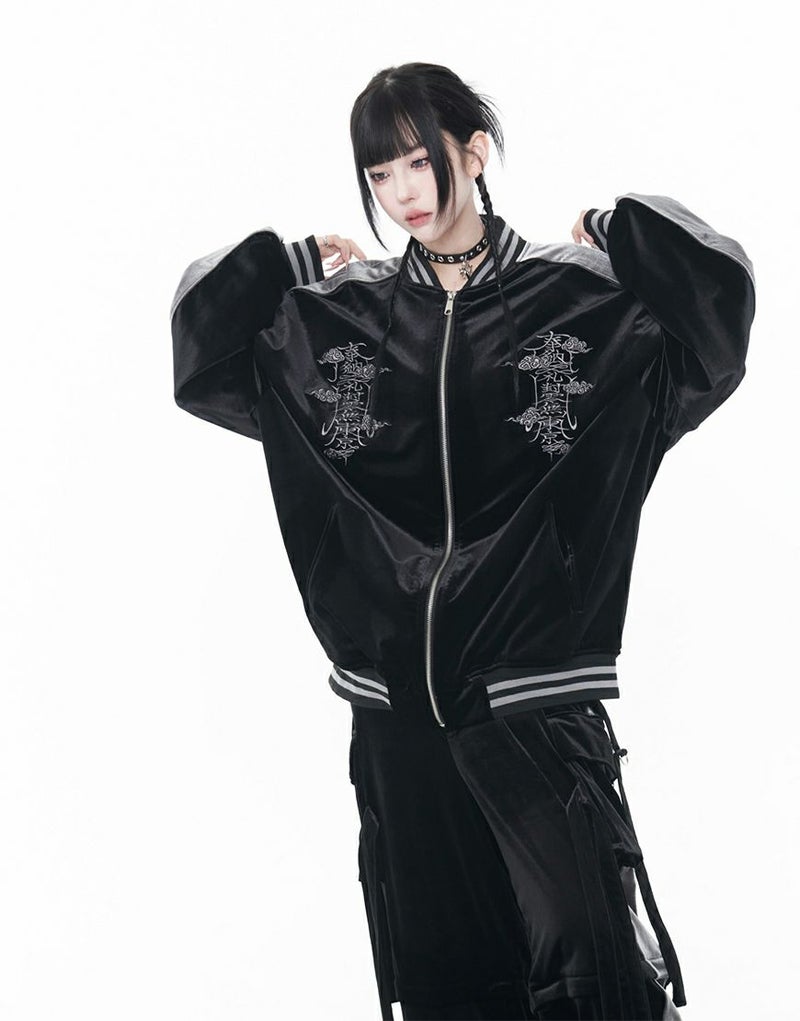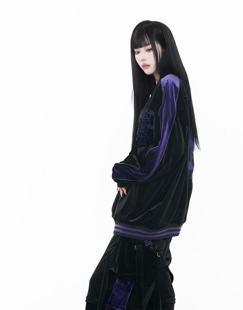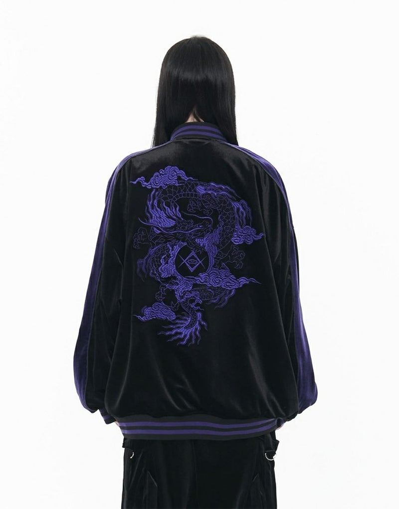 両胸&背面にオリジナル刺繍を施したベロアスカジャンになります。