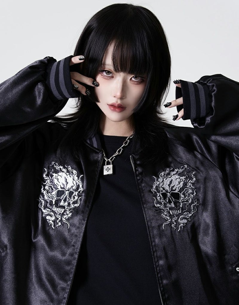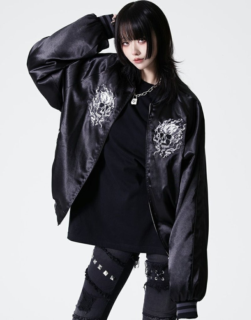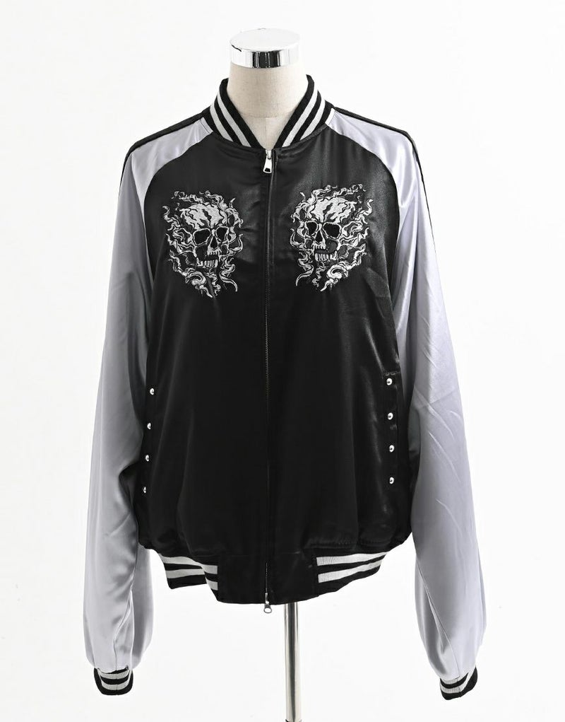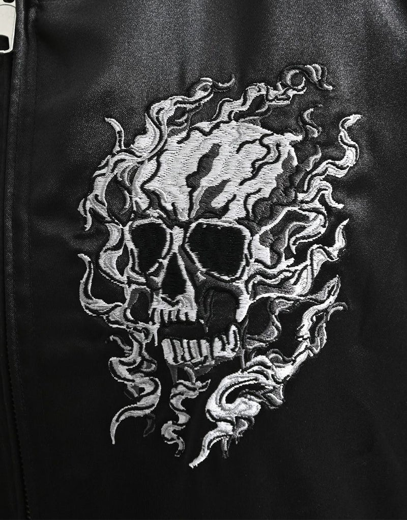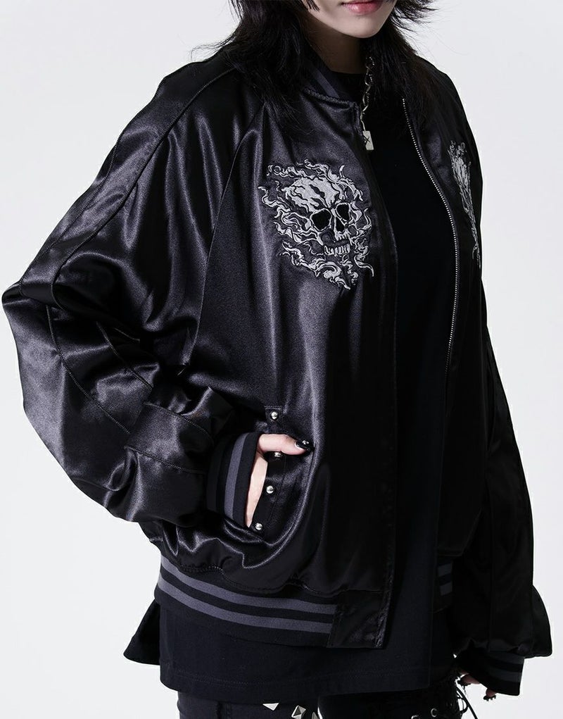 バックにも迫力あるスカル刺繍を大胆に配置し、後ろ姿までしっかり映える1枚です。