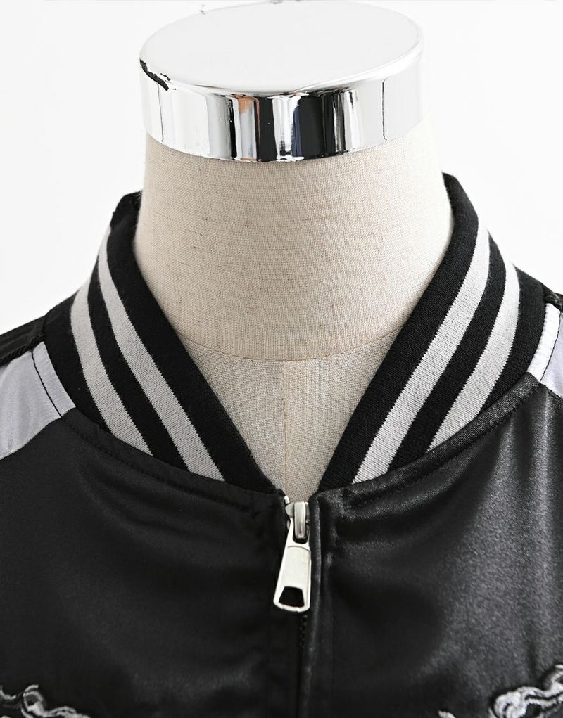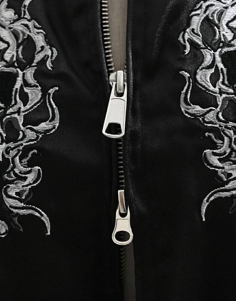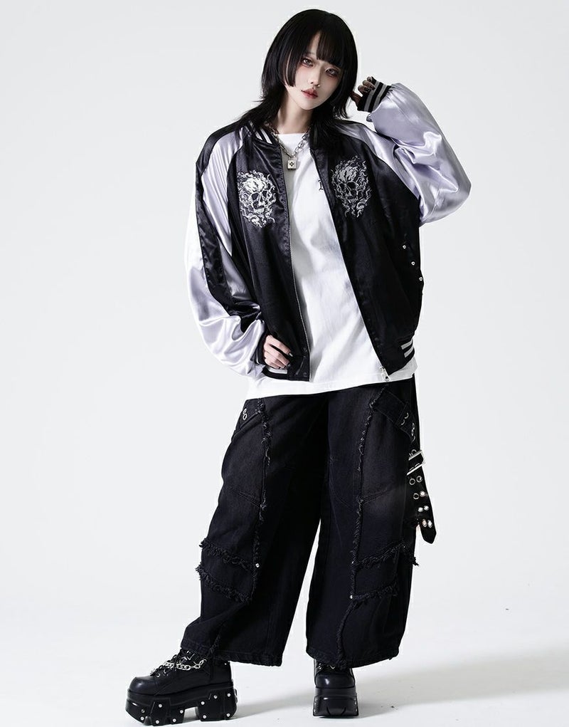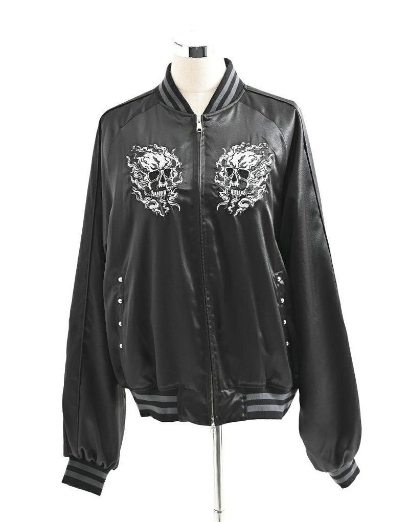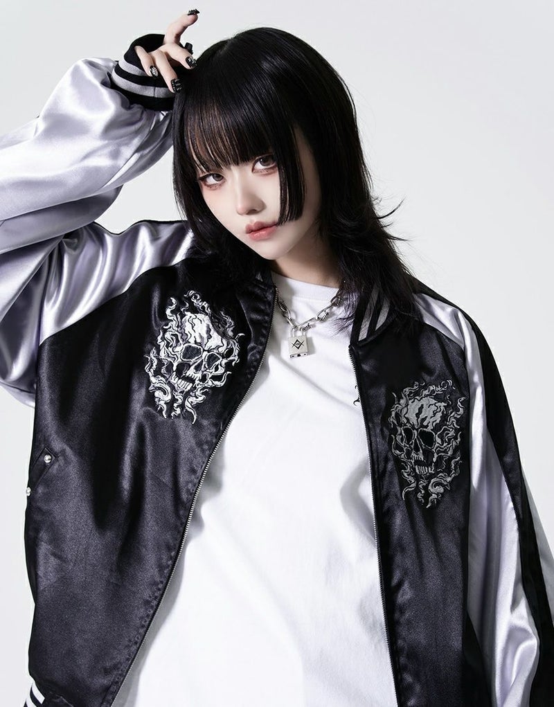 バックにも迫力あるスカル刺繍を大胆に配置し、後ろ姿までしっかり映える1枚です。