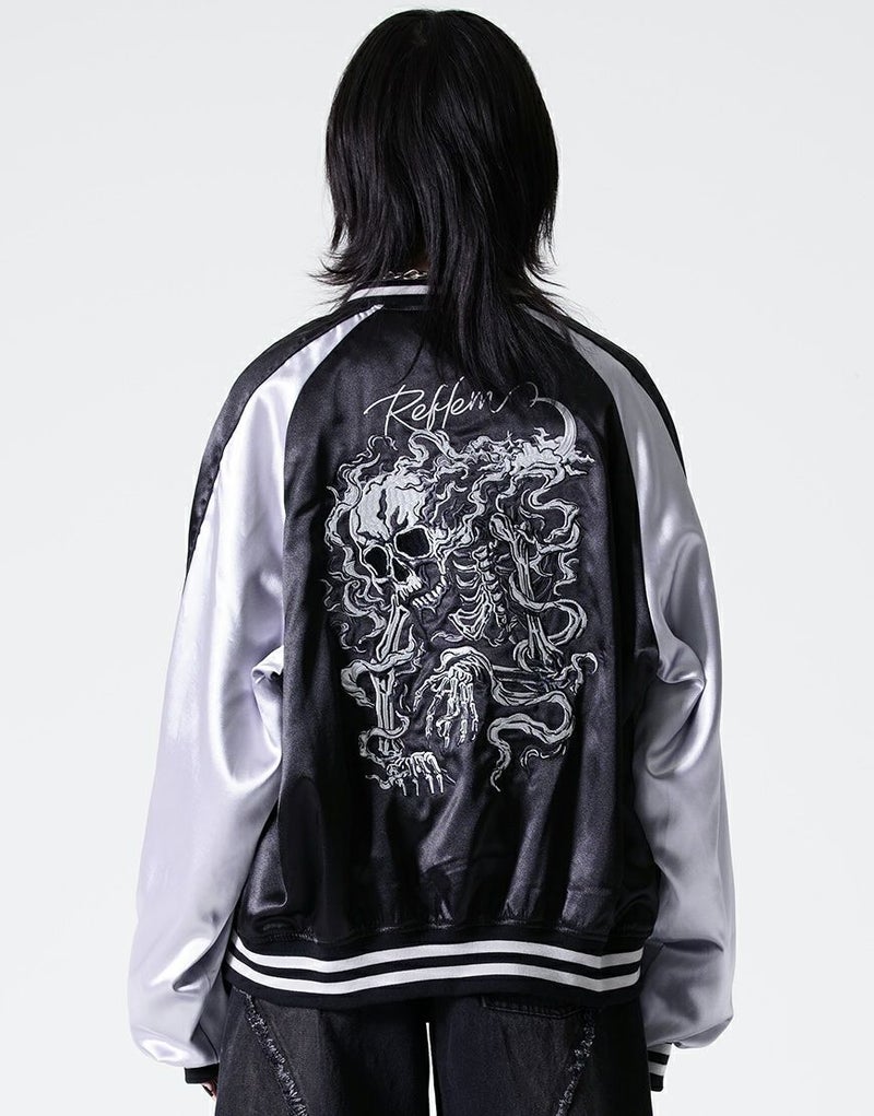 REFLEMから、ダークなムードをまとえる、スカル刺繍入りスカジャンが登場。