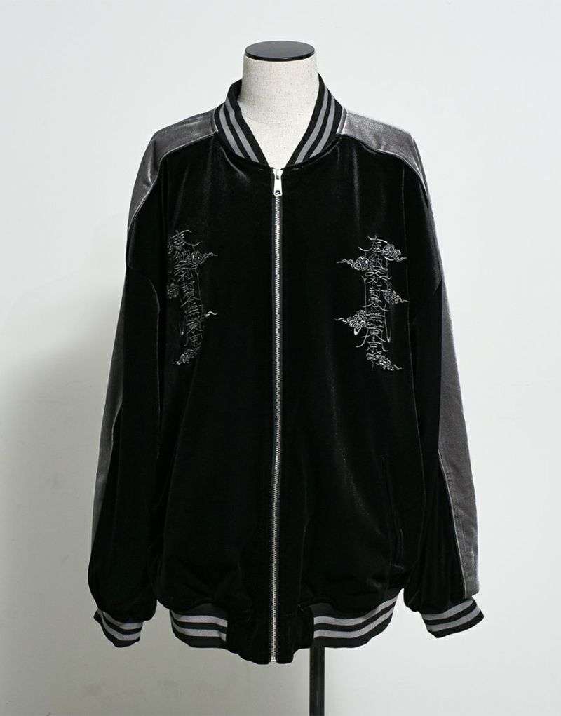 両胸&背面にオリジナル刺繍を施したベロアスカジャンになります。