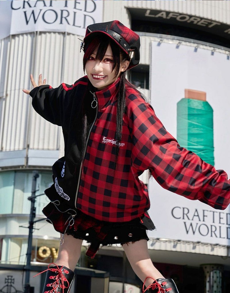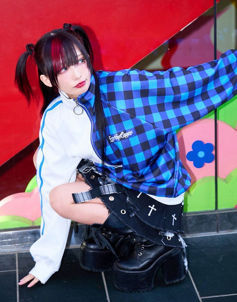 左右で切り替えたバイカラーに、目を惹くチェック柄を組み合わせたデザインは、まさに“ガルルらしさ”全開。