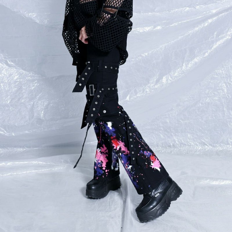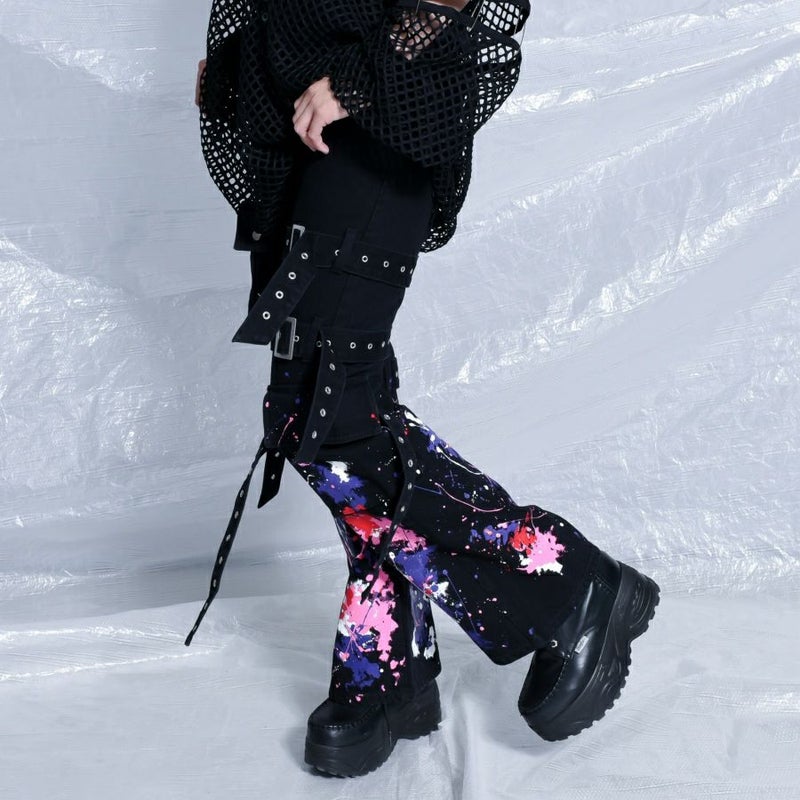 REFLEMからベルト付ペイントフレアシルエットカーゴパンツが入荷。