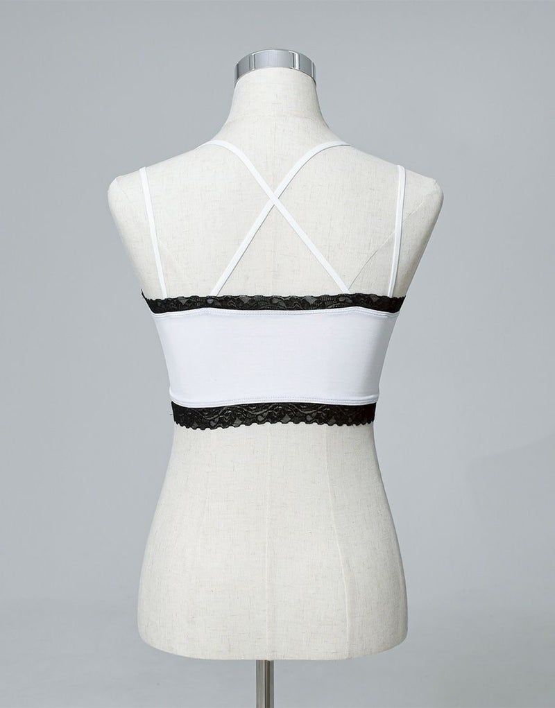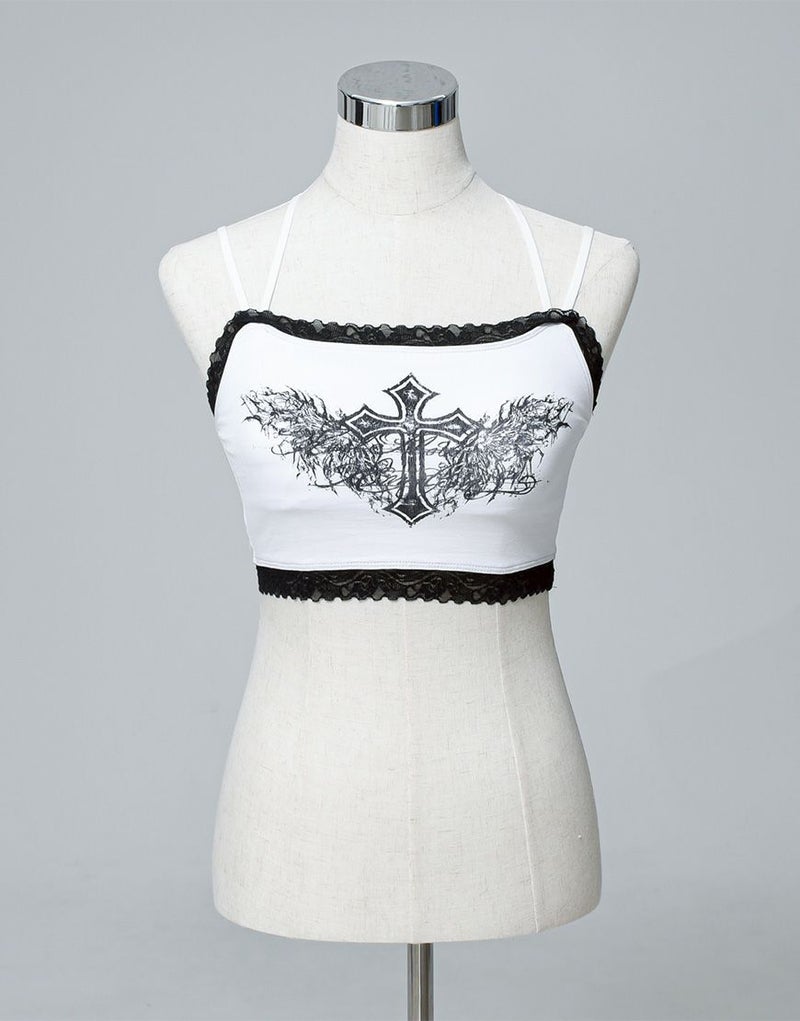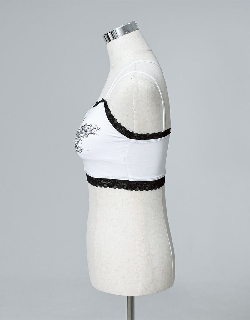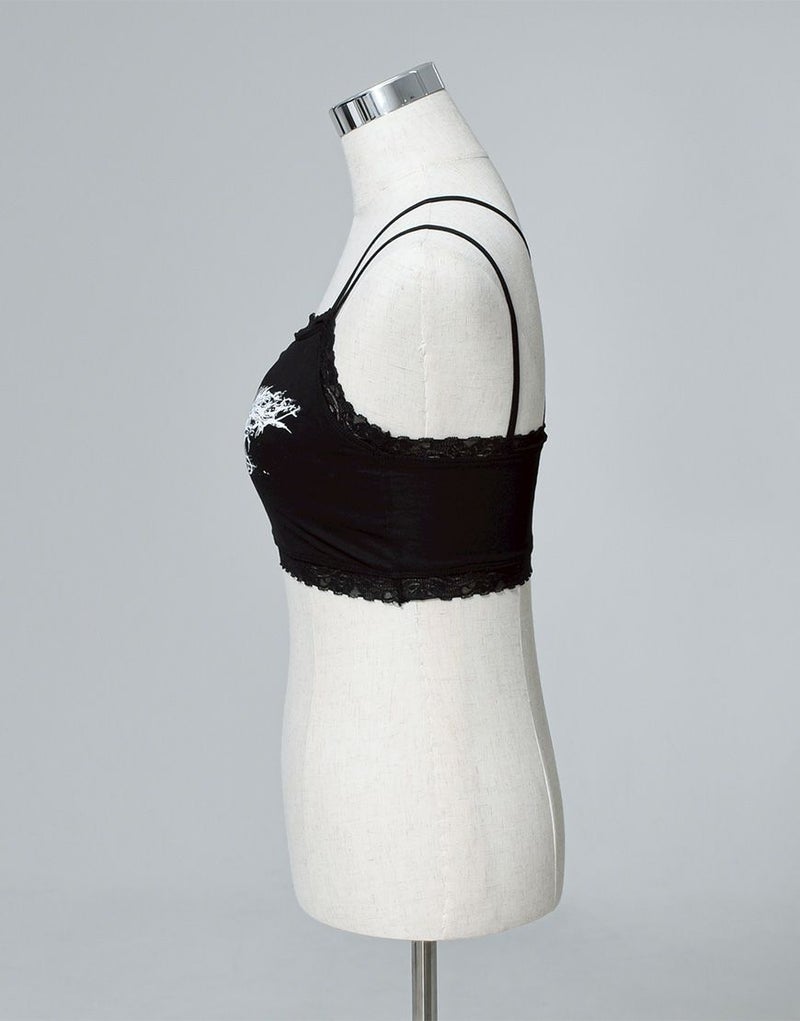 繊細なレースが縁取る、ちょっぴり病みかわ&ちょいゴシックなムードのクロップドキャミです