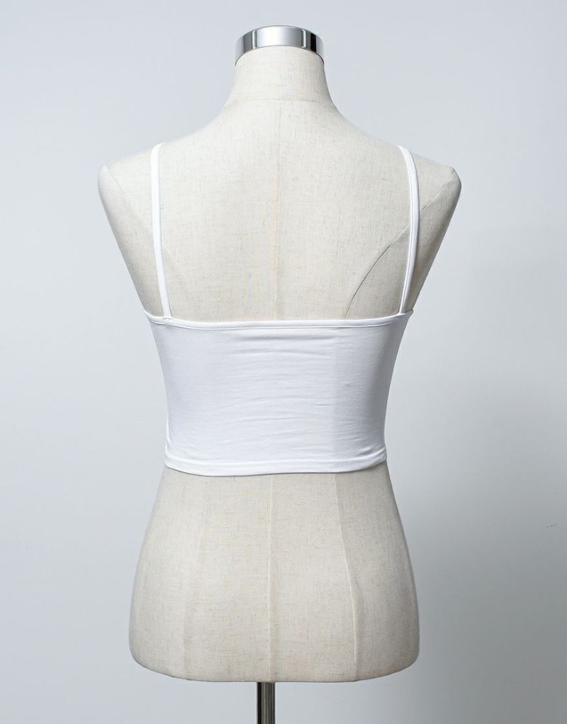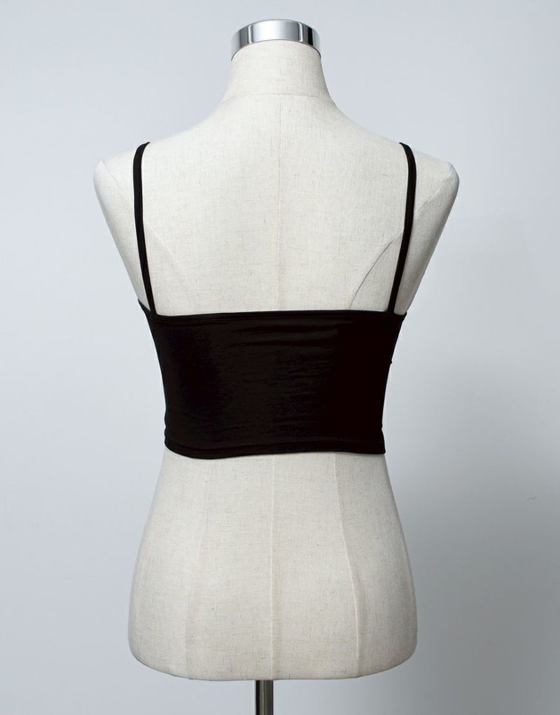 デコルテを美しく魅せるクロスストラップのデザインがポイントで、1枚でもレイヤードでも着映えするアイテムです。