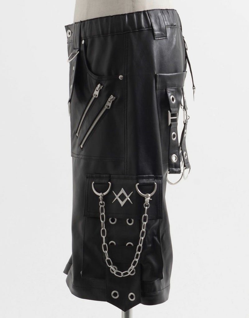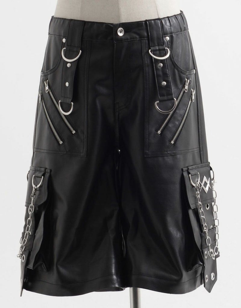 随所に取り付けられたDカンやチェーン、ジップデザインがアクセントとなり、エッジィでインパクトのある一本に仕上がっています。